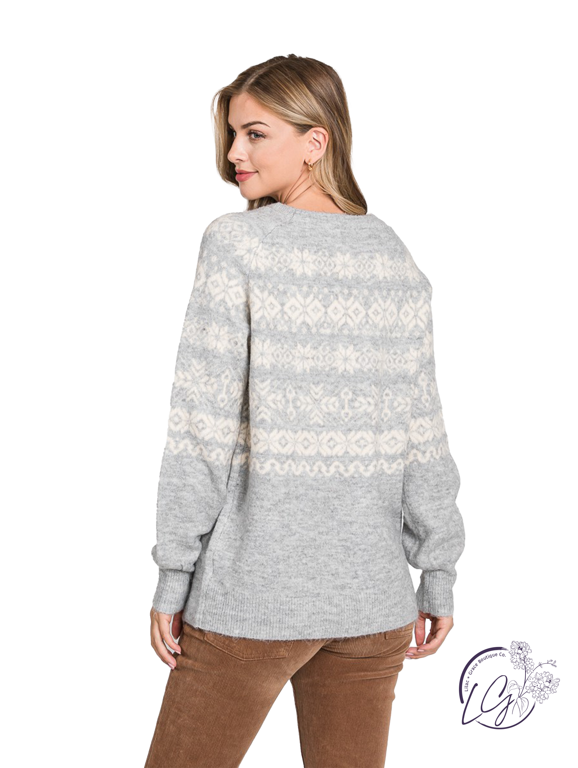 The "Blizzard Bliss Sweater" is a true embodiment of winter's enchanting beauty and cozy comfort, designed to whisk you away into a world of serene elegance amidst the frosty wonderland. As you slip into the "Blizzard Bliss Sweater," you become a part of a magical winter narrative. Whether you're strolling through a snow-covered landscape, sipping hot cocoa by the fireplace, or enjoying a festive gathering, this sweater becomes a cherished companion that radiates charm and elegance.