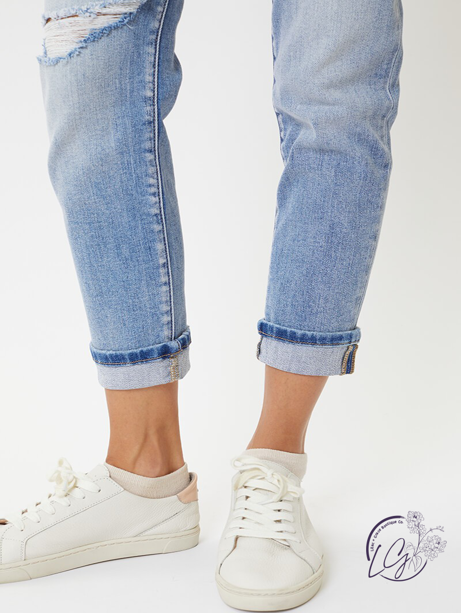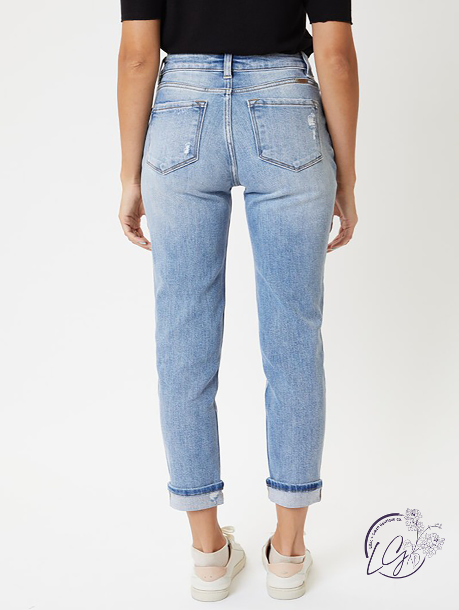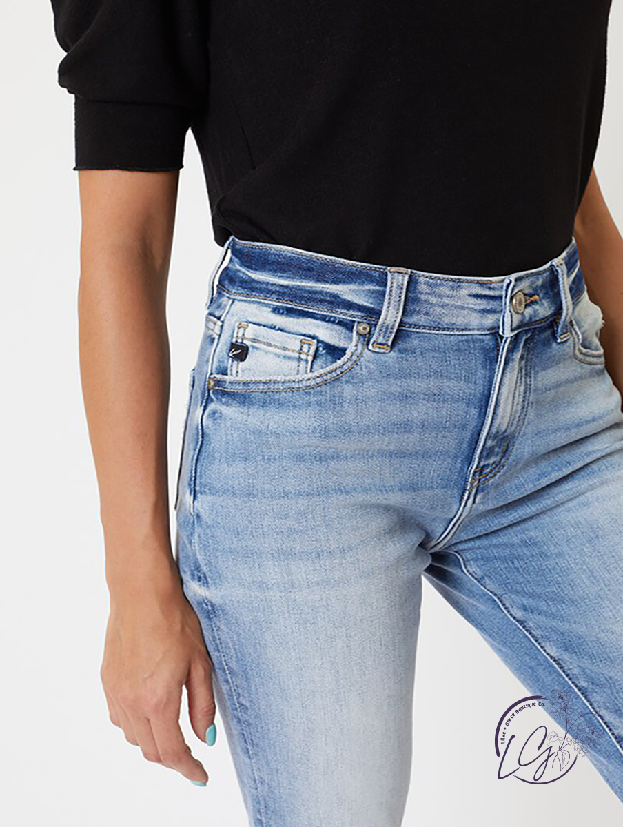 Abby High-Rise Hem Detail Mom Jean by KanCan