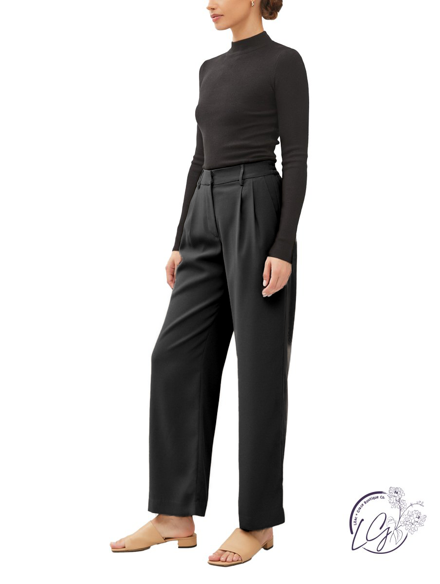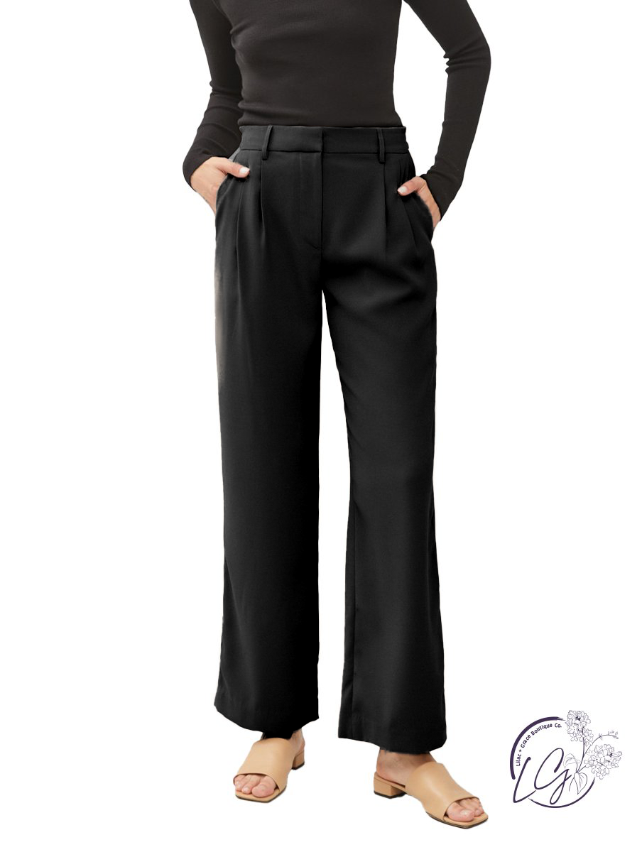 Step into a world of refined sophistication with the All-Day Elegance Trousers – a perfect blend of timeless style and modern comfort. These wide-leg, high-waist dress pants effortlessly elevate your wardrobe, offering versatility for any occasion.