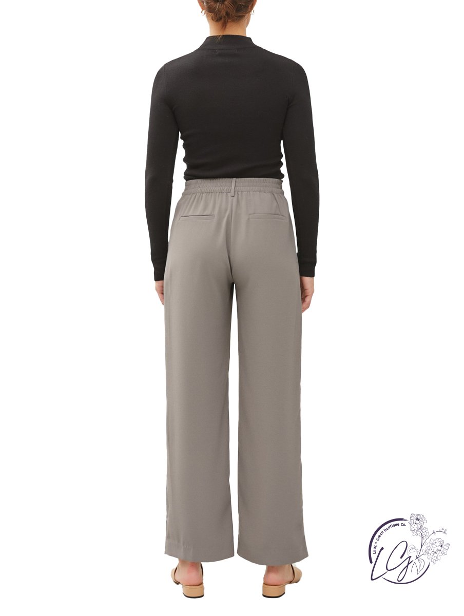 Crafted with meticulous attention to detail, these trousers feature a tailored fit that complements the figure, while the high-waist design adds a touch of classic elegance. The elastic back ensures a comfortable and customizable fit, allowing you to move with ease throughout the day.