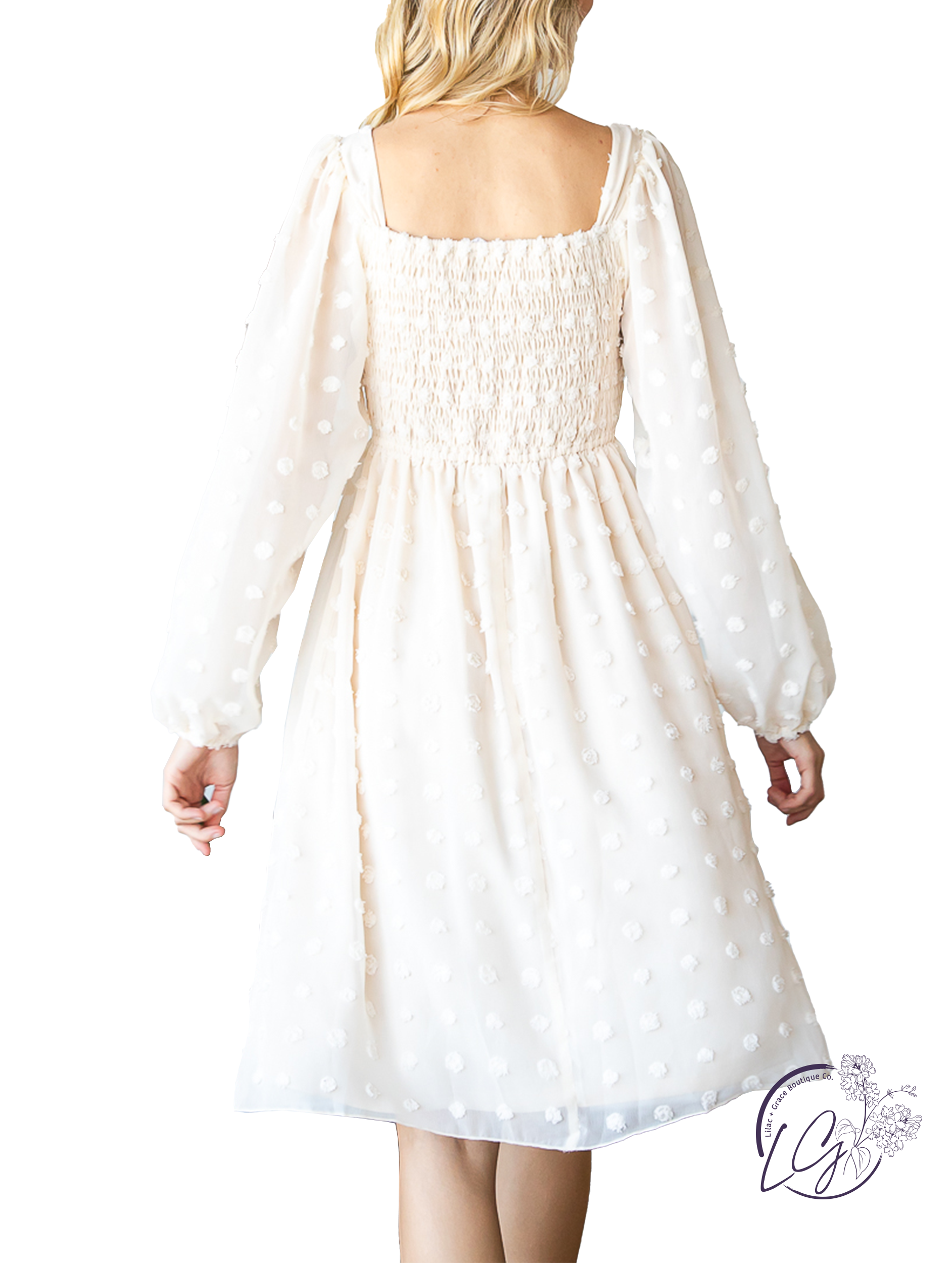 Step into ethereal elegance with our Alpine Breeze Swiss Dot Chiffon Dress. Delicately crafted with airy chiffon and adorned with charming Swiss dots, this dress captures the essence of alpine allure. Its flowing silhouette dances with every breeze, while the intricate details evoke the mystique of mountain peaks kissed by sunlight. Whether you're strolling through meadows or attending a garden soirée, let this dress be your ode to natural beauty and timeless grace