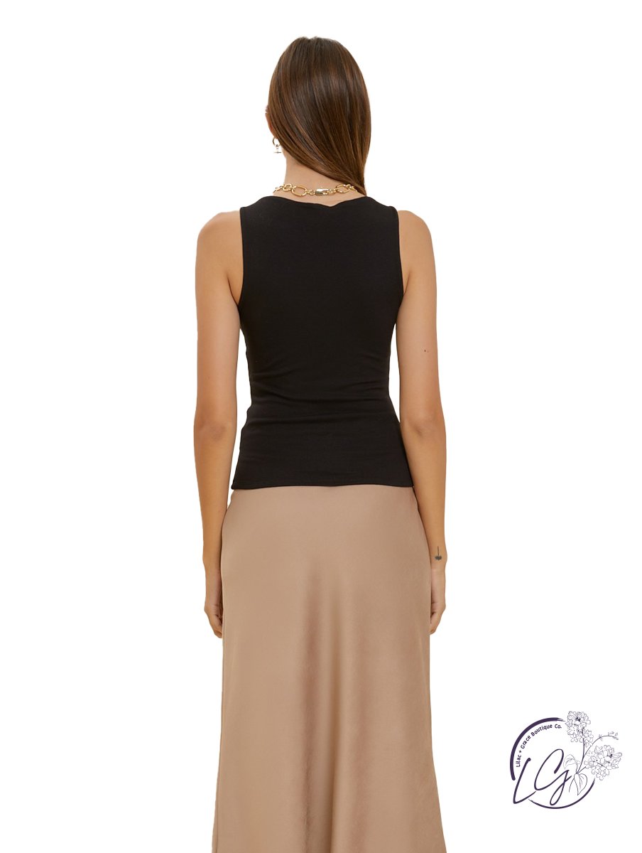 The Bare Bliss Tank is a delightful and essential wardrobe piece that effortlessly combines comfort with a touch of elegance. Here's a detailed description:
