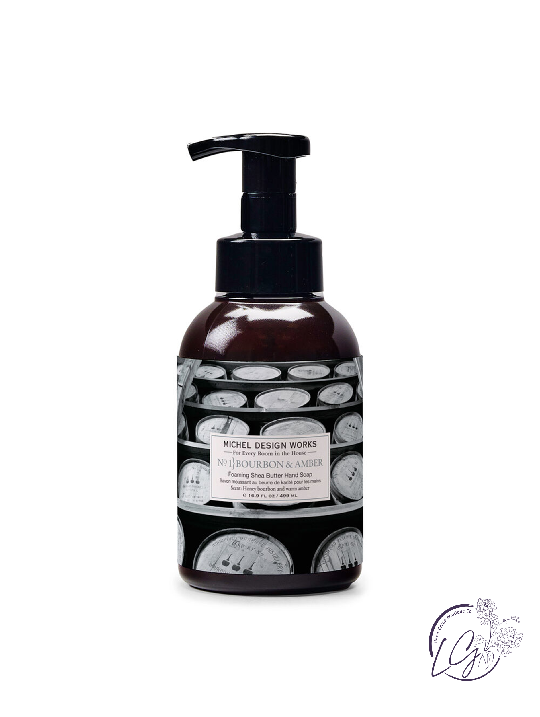 Slip through a hidden doorway for good conversation and a barrel-aged spirit served neat. Featuring premium ingredients like shea butter and aloe vera, this foaming hand soap gently cleanses and moisturizes while leaving skin lightly scented with notes of honey bourbon, warm amber, hints of patchouli and blond woods. Generously sized, the attractive amber bottle has striking black-and-white imagery that complements a modern aesthetic.
