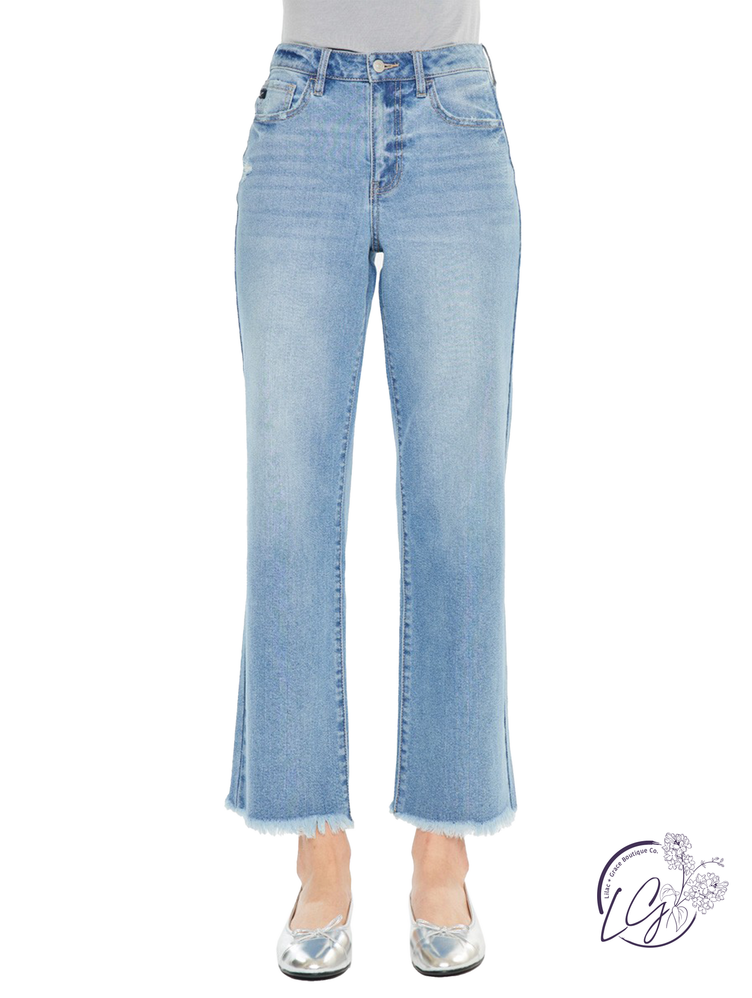 A modern take on a classic silhouette, this high-rise slim wide leg jean features a flattering fit through the waist and hip with a subtle, wide leg finish. The medium wash adds a versatile, everyday feel, while the comfort stretch denim offers flexibility and ease without losing its shape.