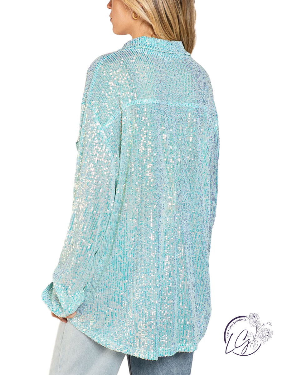 A Glitter Glam Shirt Topcombines the comfort of a classic shirt with the glamour of sequins. The sequin detailing adds a touch of sparkle and elegance, making it suitable for both casual and semi-formal occasions. The addition of a pocket adds functionality and a stylish detail to the garment. Overall, this top strikes a balance between comfort, style, and versatility, making it a wardrobe staple for those looking to add a bit of flair to their everyday outfits.