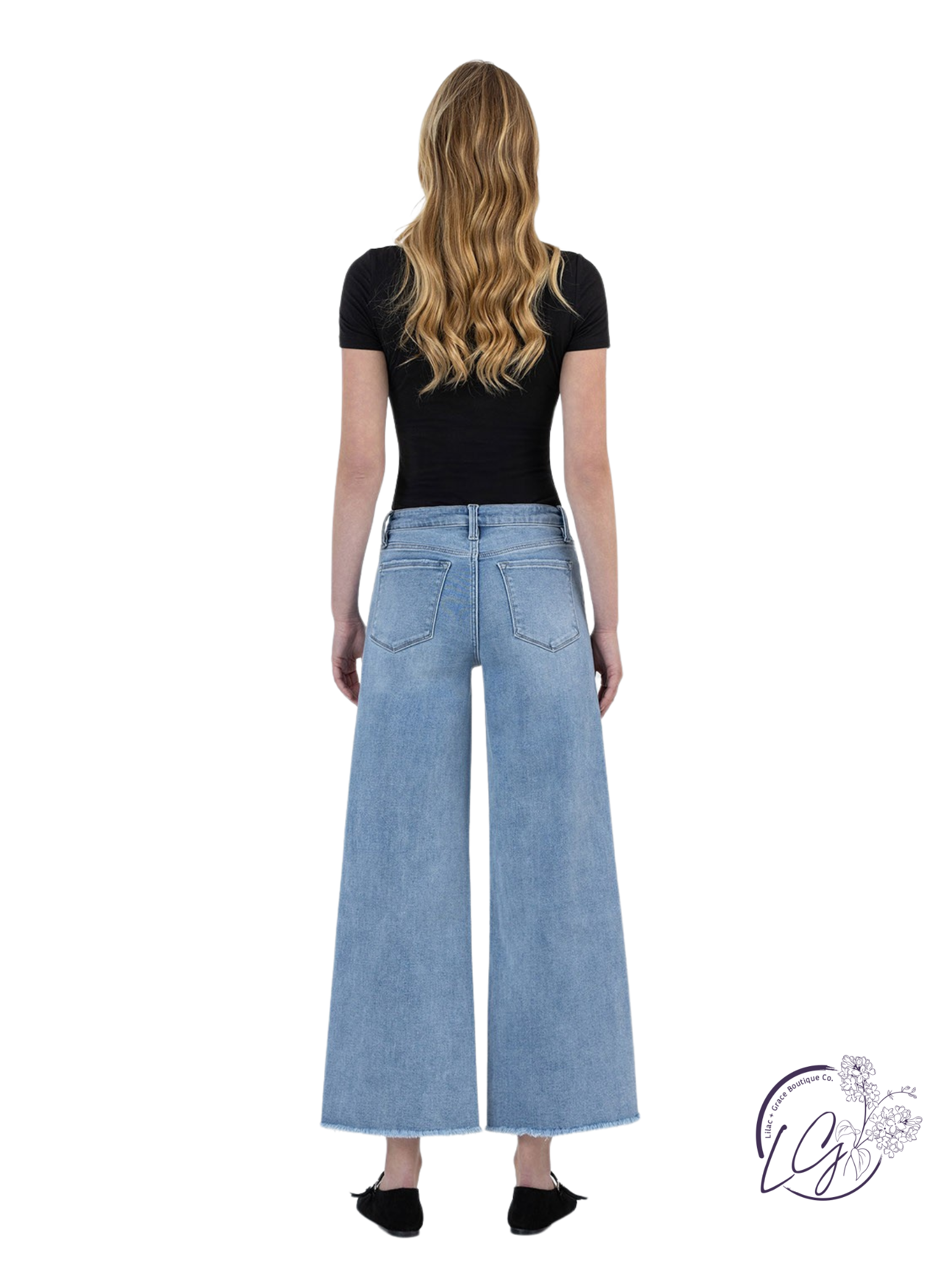 Experience comfort and confidence with the Cecilia High Rise Ankle Wide Leg jeans by Lovervet. Crafted from stretch denim, these jeans feature a seamless waistband and a tummy control design with inner panels that shape and smooth your silhouette. The high-rise waist enhances your figure, while the frayed hem and ankle length add a stylish touch. With a 10 1/4" front rise, 27 1/4" inseam, and 22 1/2" leg opening, these jeans offer a flattering wide-leg fit perfect for everyday wear.