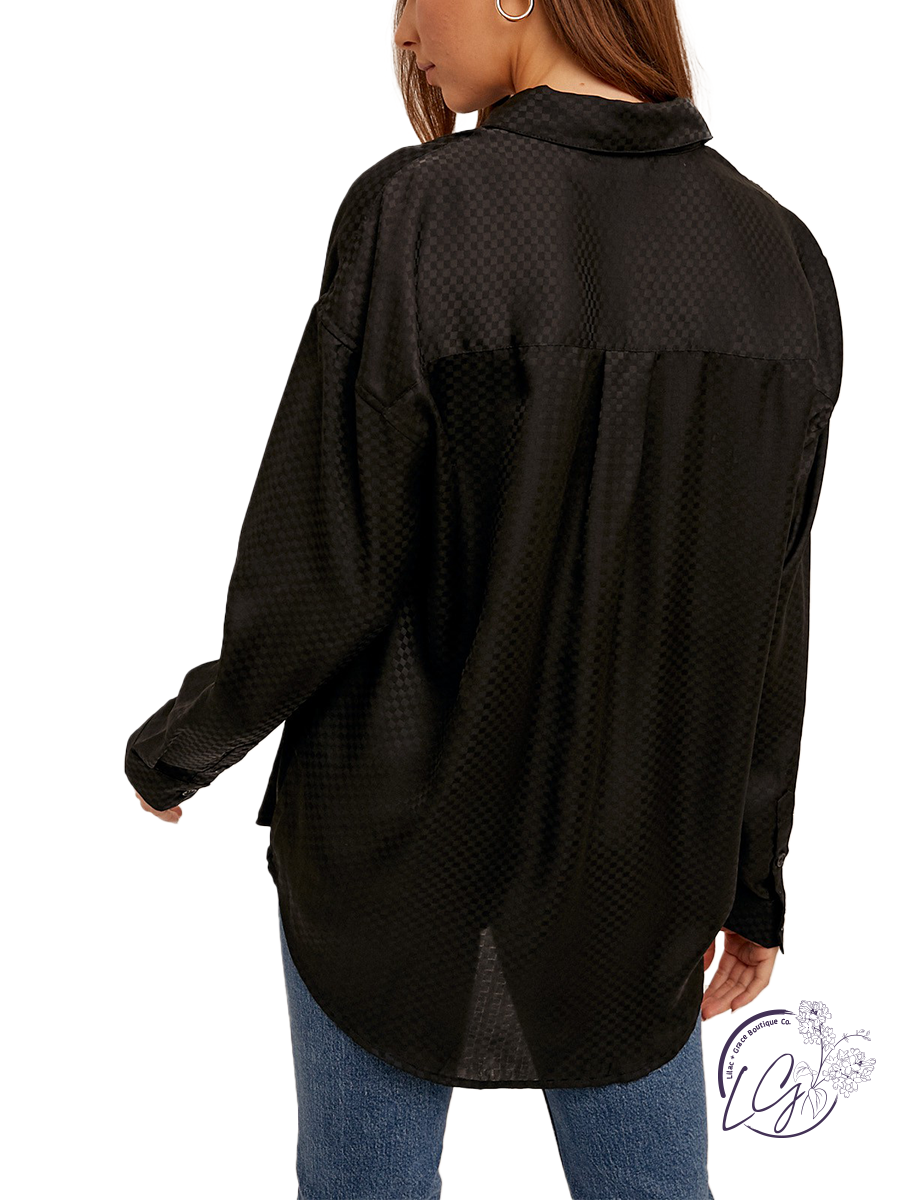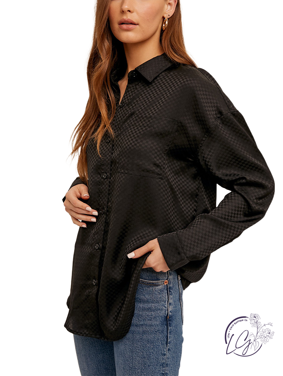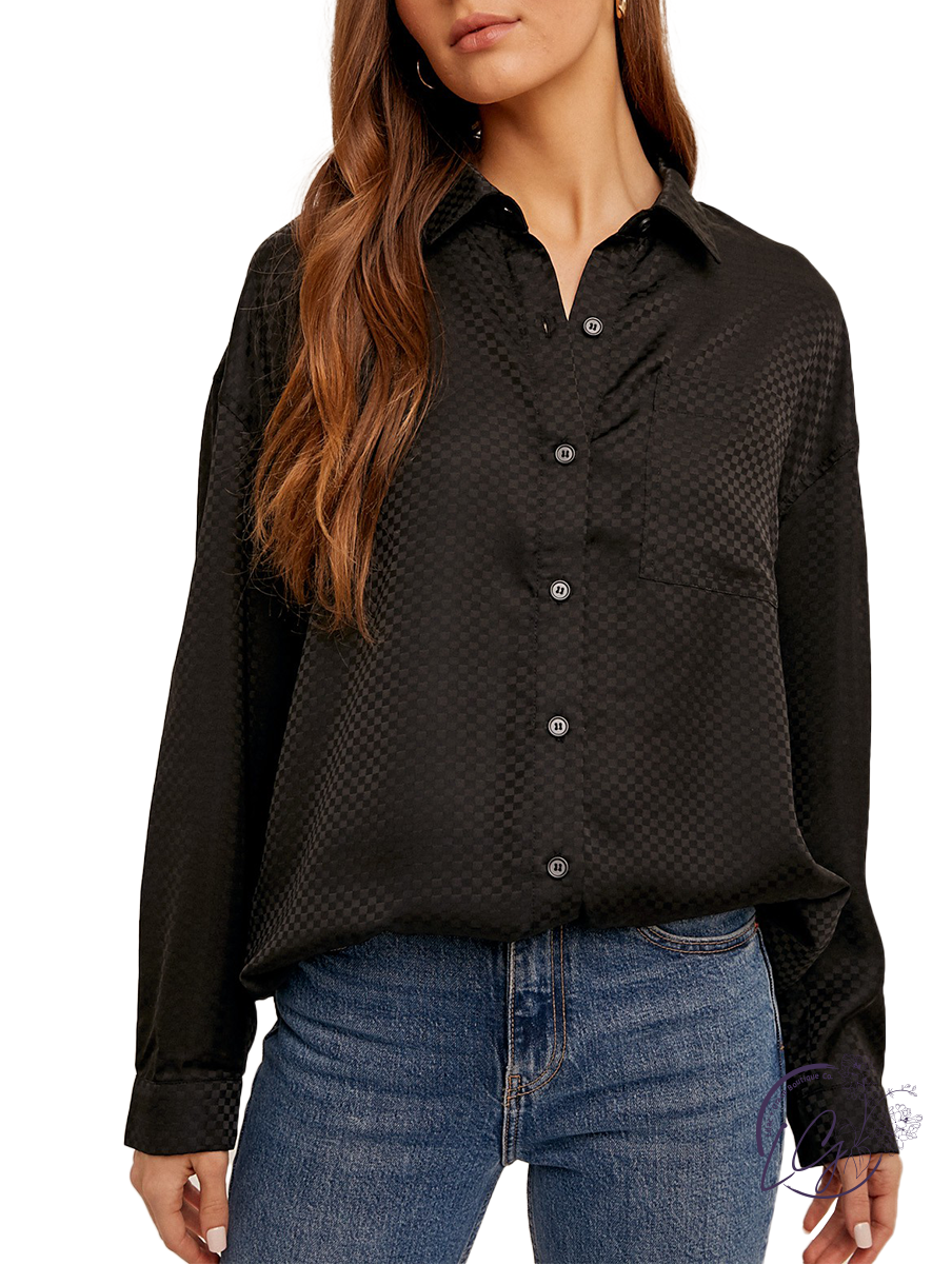 The Classic Checkered Blouse features a stylish pattern woven into the fabric, adding texture and visual interest. With its classic button-down design, it offers versatility in styling, whether worn casually or dressed up.