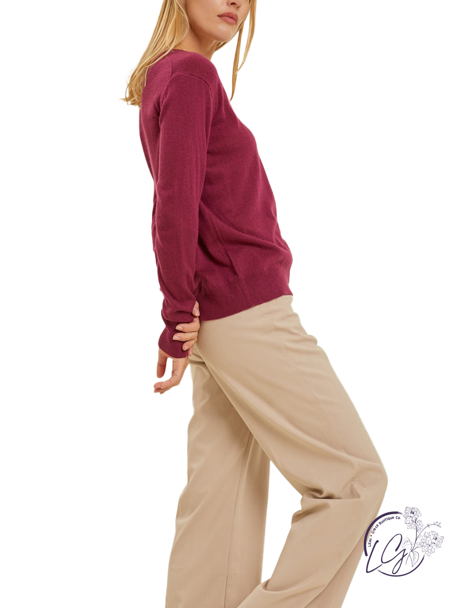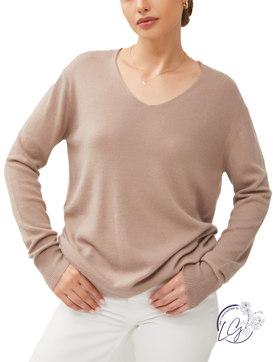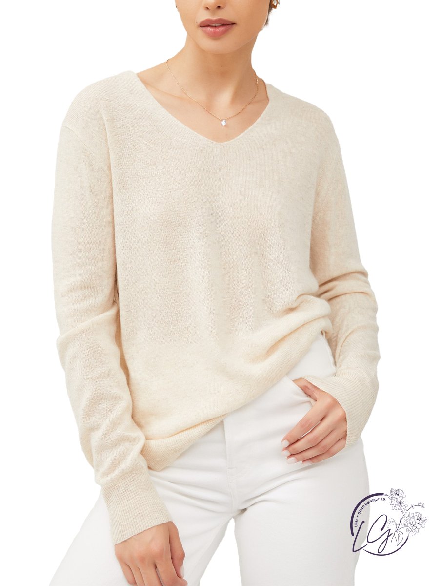 Indulge in the perfect harmony of style and comfort with the Chic Comfort Deep V Sweater, a versatile and cozy knitwear piece designed to elevate your wardrobe. This sweater is a celebration of modern sophistication, featuring a trendy deep V-neckline that adds a touch of allure to its relaxed silhouette.