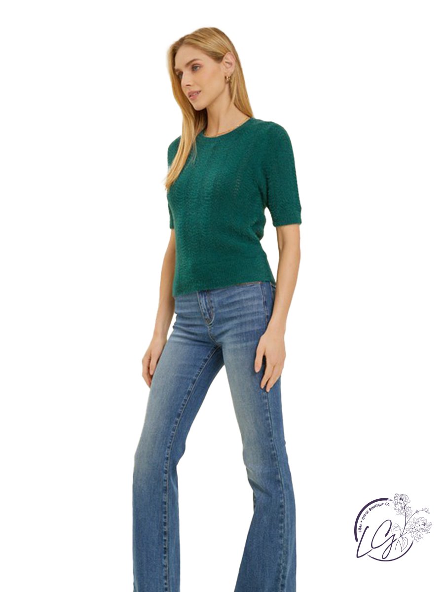 Introducing the "Chic Drift Sweater Tee" — where comfort meets class in a stylish knit ensemble. Immerse yourself in the luxurious softness of this knit top, adorned with stunning knitted details that add a touch of elegance to your everyday wardrobe.