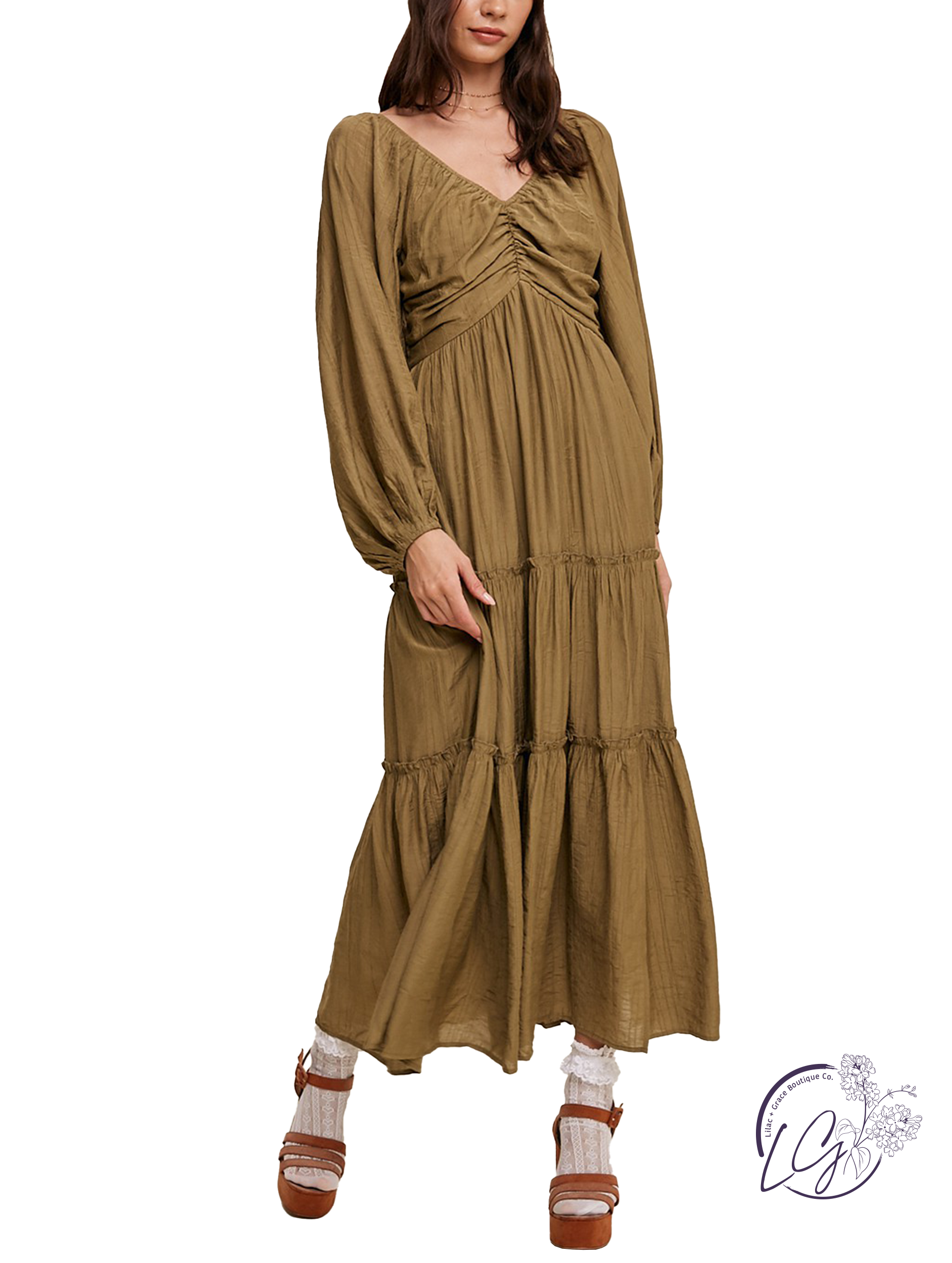 The Radiant V-Neck Long Sleeve Maxi Dress is a stunning and versatile piece designed to elevate your wardrobe. With a flattering V-neckline that accentuates the décolletage, this dress offers a touch of sophistication. The cinched waist creates a defined silhouette, highlighting your curves while providing comfort. Its long sleeves add an elegant touch and make it suitable for cooler weather or evening occasions. The flowing maxi length adds drama and elegance, making it perfect for both casual outings and special events.