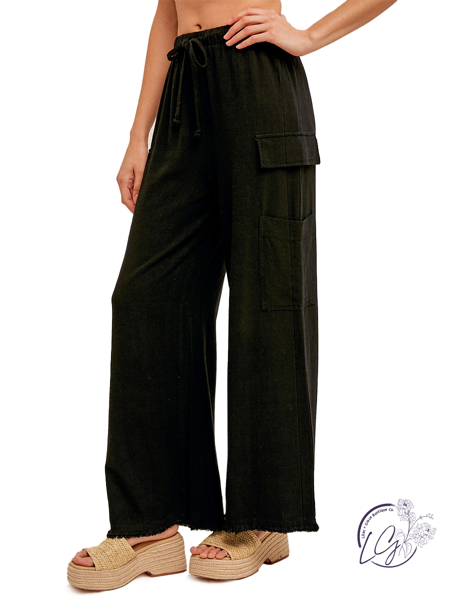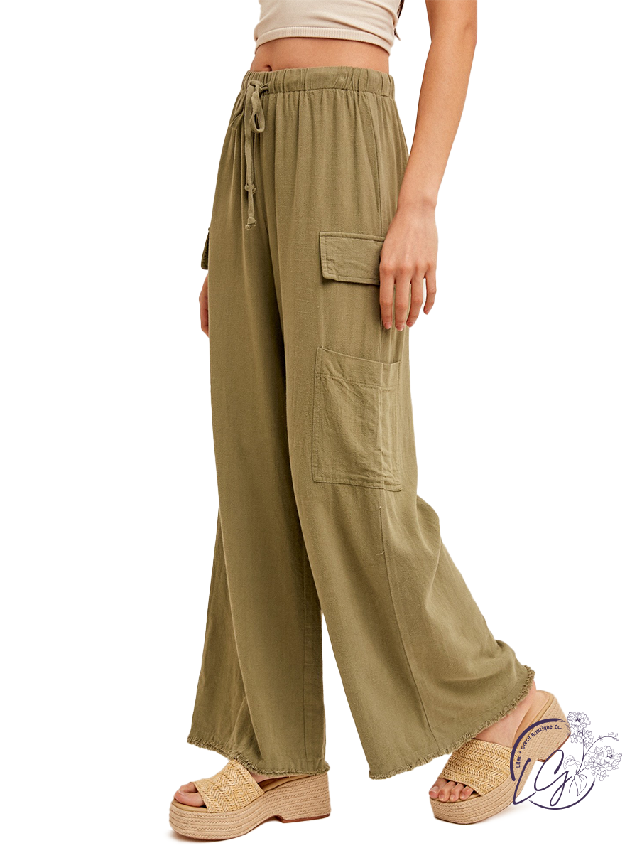 The Cityscape Chic Cargo Trousers are a stylish and comfortable choice for casual wear. Crafted from lightweight linen fabric, they offer breathability and comfort, perfect for warm weather. The elastic waist ensures a comfortable and flexible fit, while the fringe hem adds a touch of bohemian flair. With their cargo-style design, these pants feature ample pockets for added convenience and functionality.