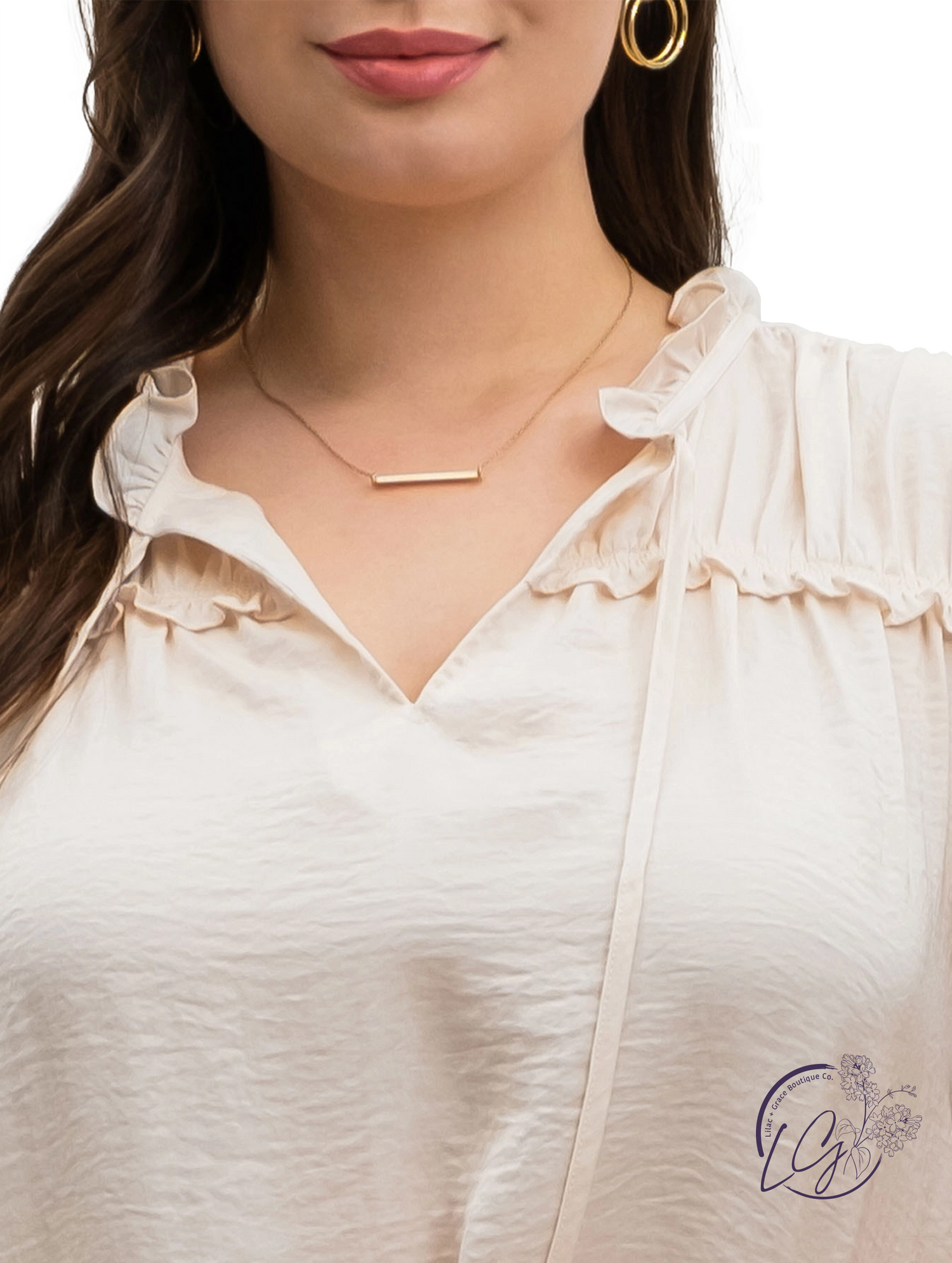 The Curvy Classique Tie-Front Collared Blouse is a stylish and feminine garment designed for curvy figures. It features a classic collared neckline adorned with delicate ruffles, adding a touch of charm and elegance. The front tie detail creates a flattering silhouette by cinching the waist and accentuating curves. The top is crafted from soft and breathable fabric, ensuring comfort throughout the day. With its versatile design, it can be dressed up or down for a variety of occasions, from casual outings to more formal events.