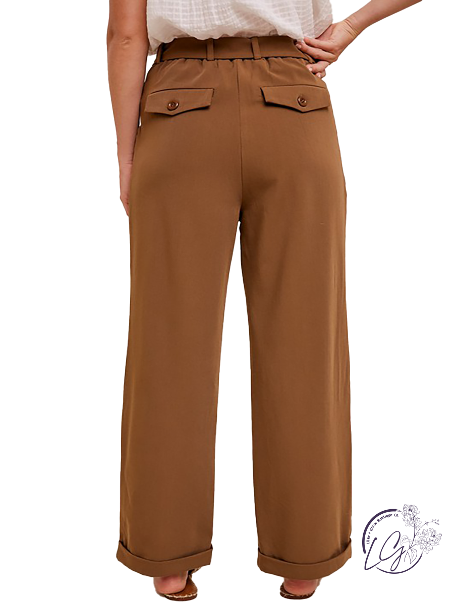 Coming Soon High-Rise Belted Trouser Pants