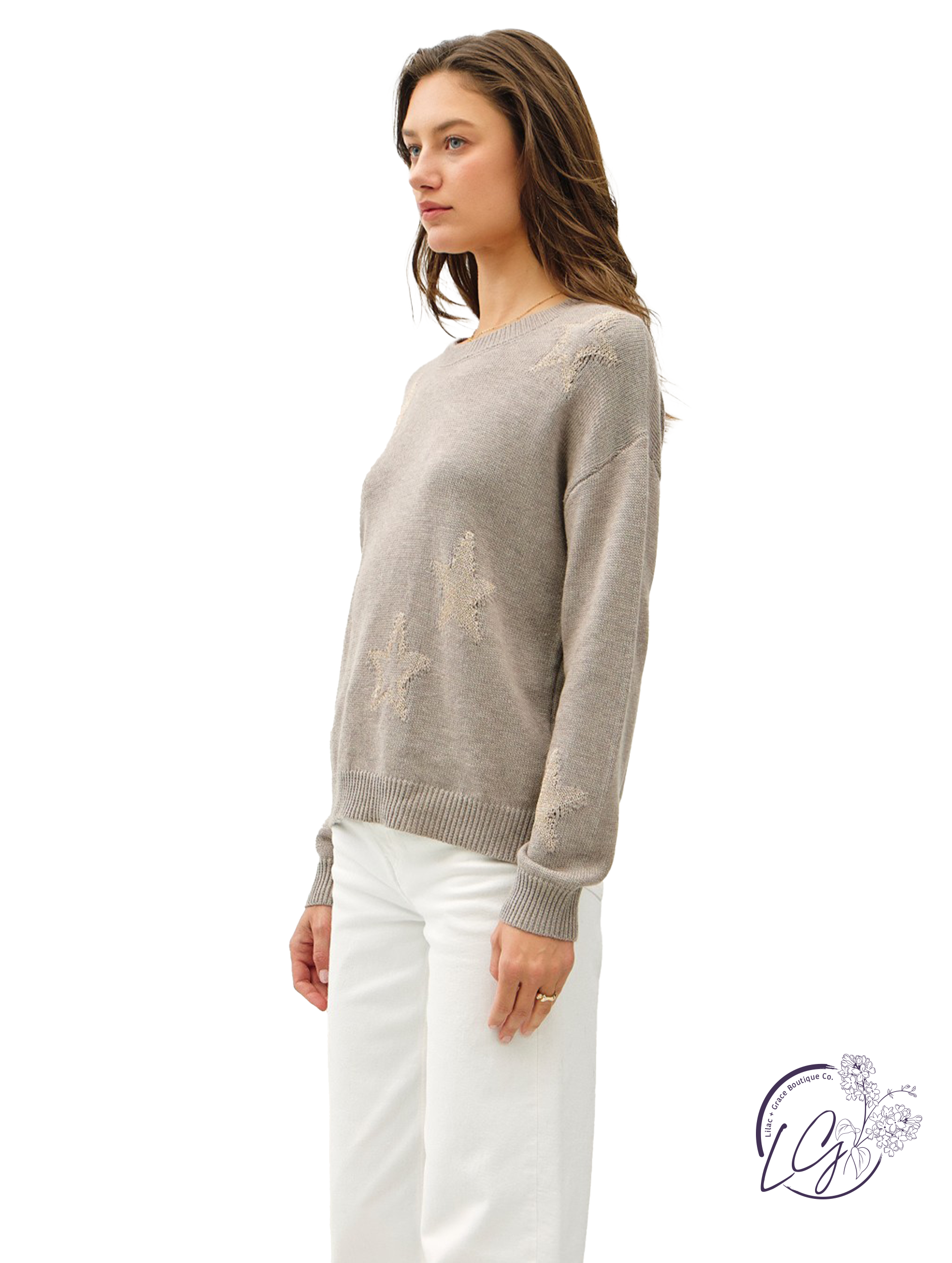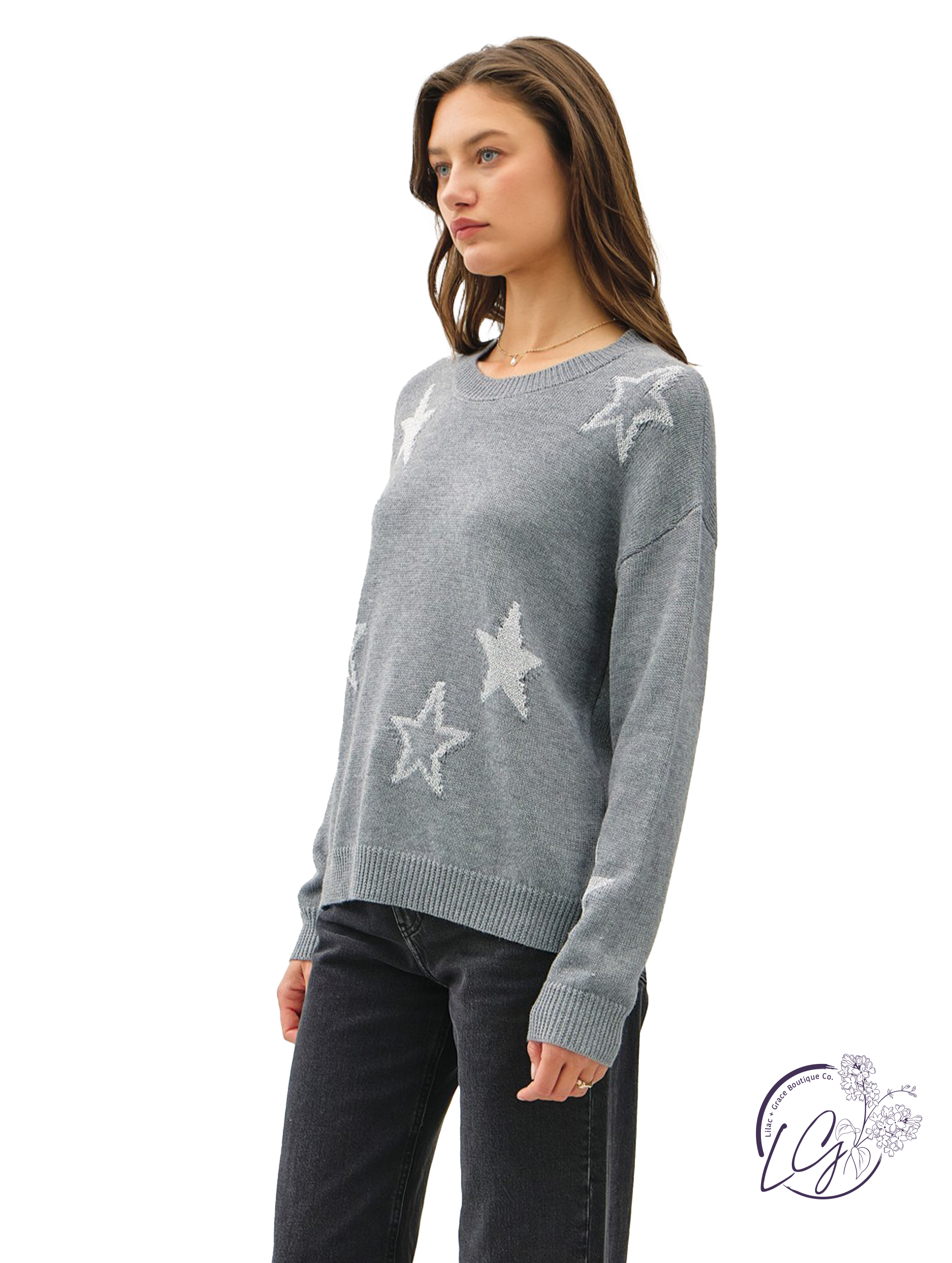 The Cosmic Spark Sweater brings a touch of celestial charm to your wardrobe. This cozy crew neck features a stunning metallic star design that adds a shimmering, cosmic vibe to its classic silhouette. Made from a soft, durable knit, the sweater is perfect for adding a bit of sparkle to your everyday look. Whether paired with jeans for a casual day out or layered over a dress for a more polished ensemble, the Cosmic Spark Sweater effortlessly blends comfort with style, making it a standout piece in any season.