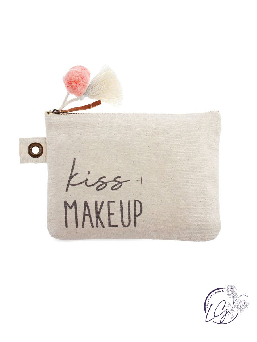 Our Canvas Carry All is perfect for all your smaller items that need organization or a place to stay together with confidence. For work, school or travel, never lose anything essential again. Made from 100% cotton canvas material with a wipe-able polyester lining to ensure easy cleaning. This zipper pouch includes a colorful pom pom and tassel attached to the zipper pull. Zipper closure. Perfect for traveling.