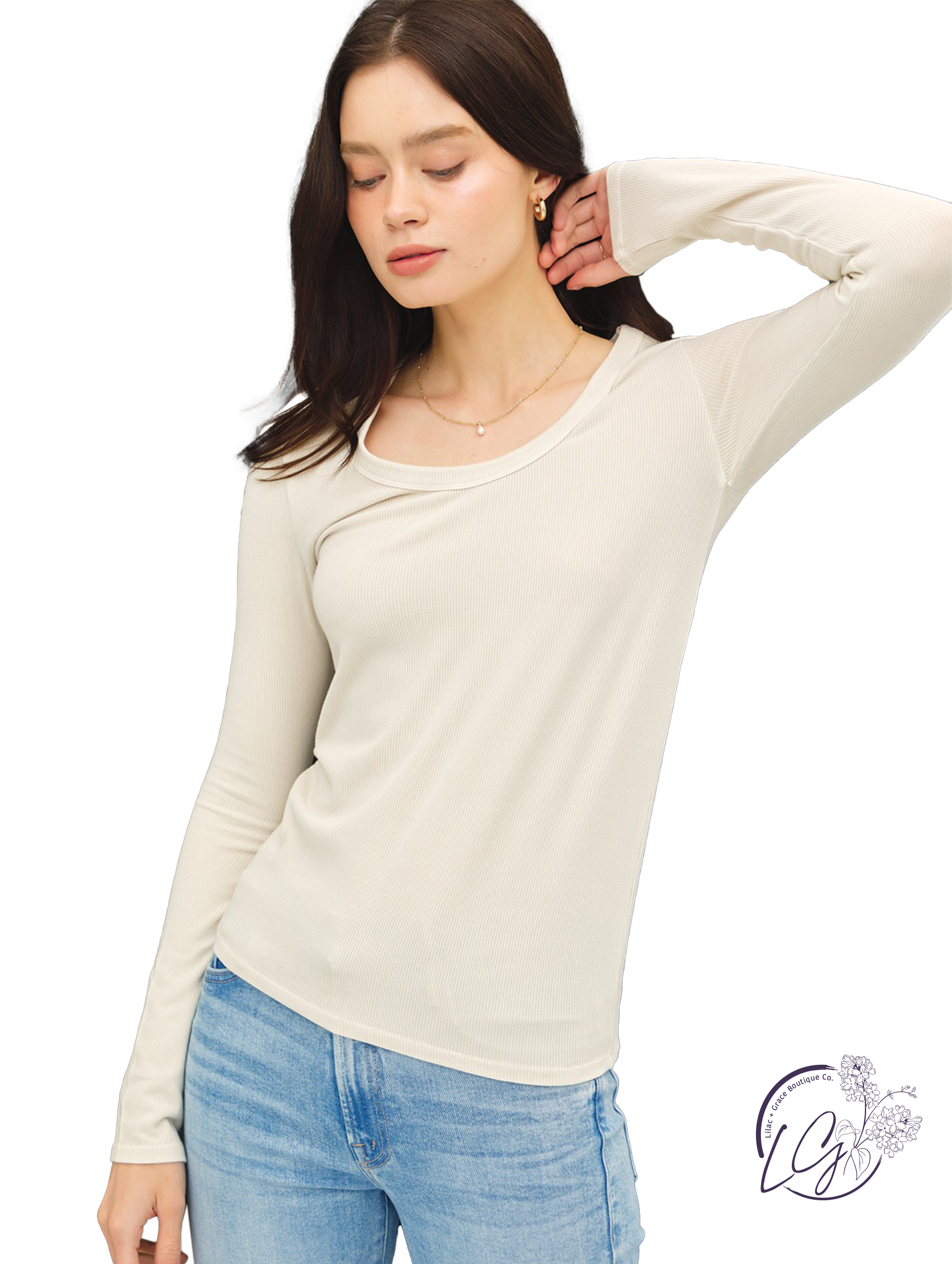Wrap yourself in warmth and comfort with the Cozy Embrace Long Sleeve Tee. Crafted from ultra-soft fabric, this tee features a relaxed scoop neckline that gently frames the collarbone, creating a flattering silhouette. Perfect for layering or wearing on its own, the long sleeves offer added warmth without sacrificing style. Ideal for lounging at home or running errands, the Cozy Embrace Tee is your go-to piece for a chic yet cozy look.