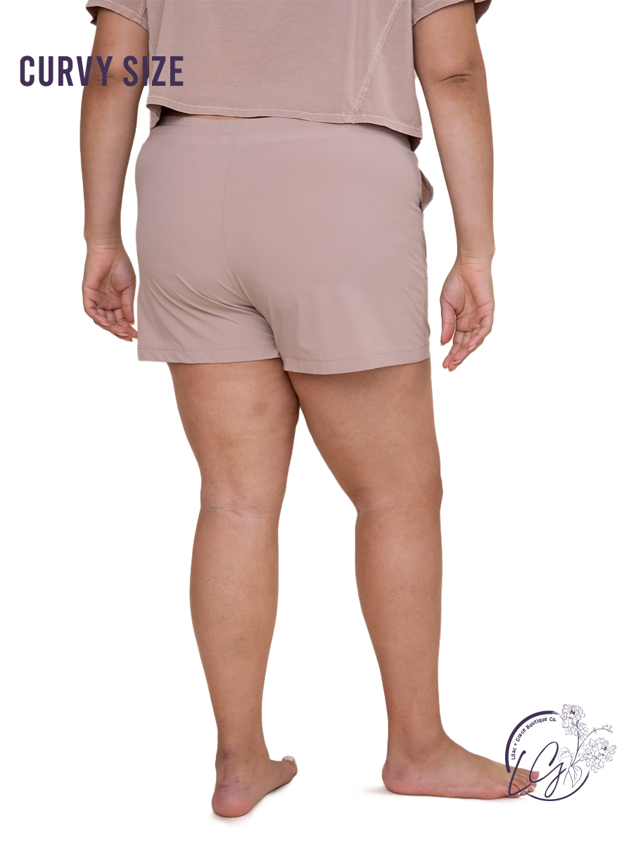 Double your wardrobe with these athleisure shorts that can be work to your next workout or out and about. They have curved front pockets and an elasticized waistband with a drawstring.