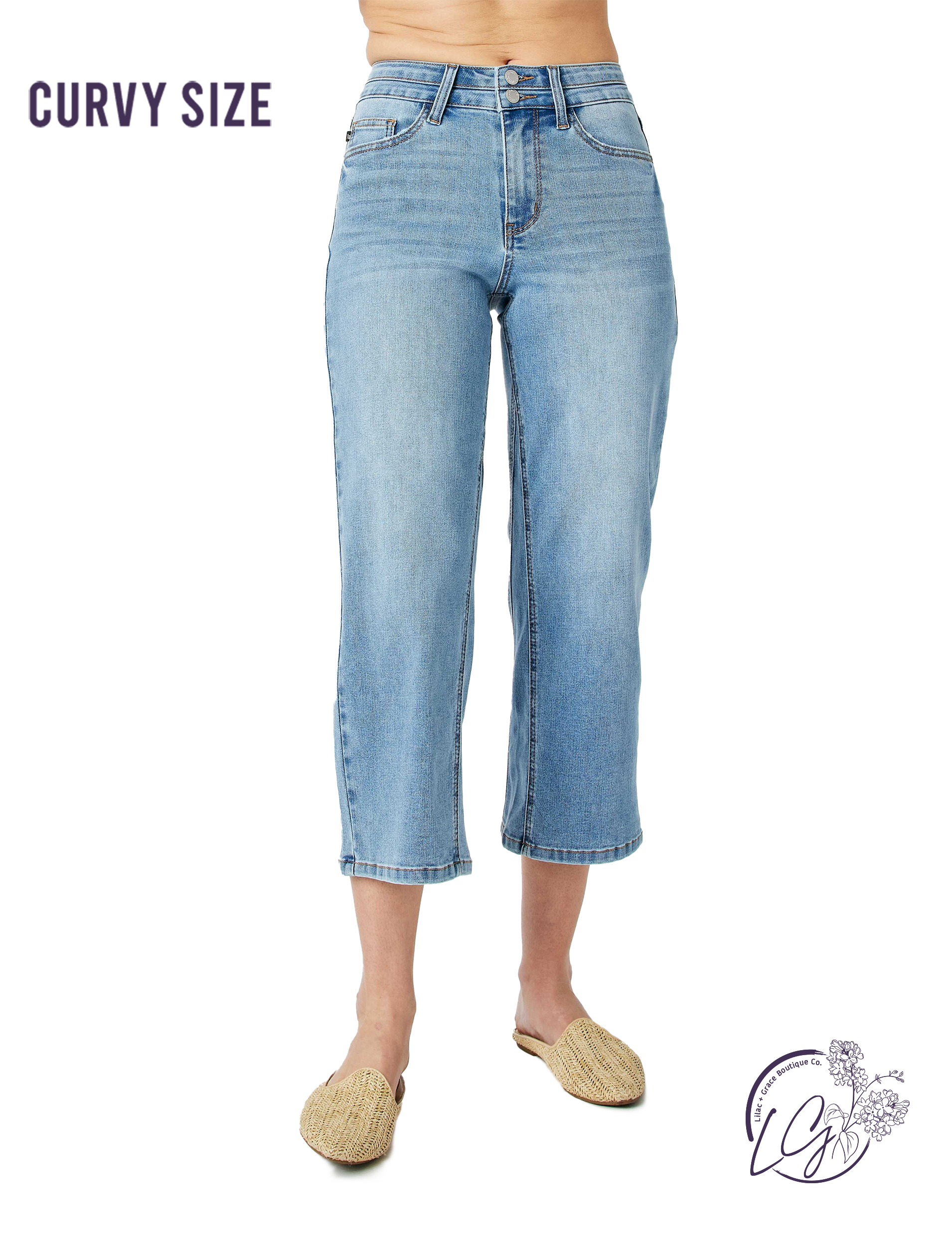 Curvy Betty High Waist Double WB Crop Wide By Judy Blue