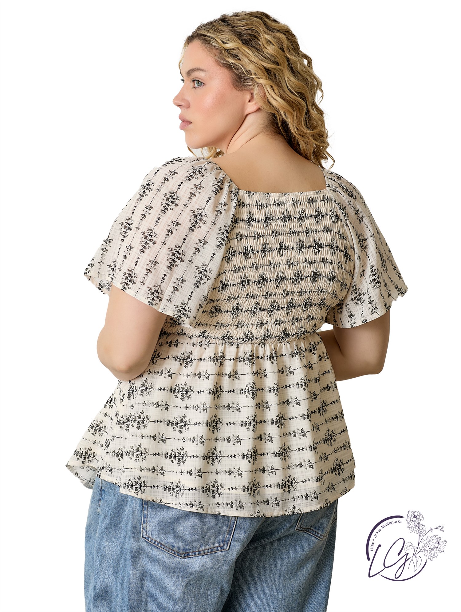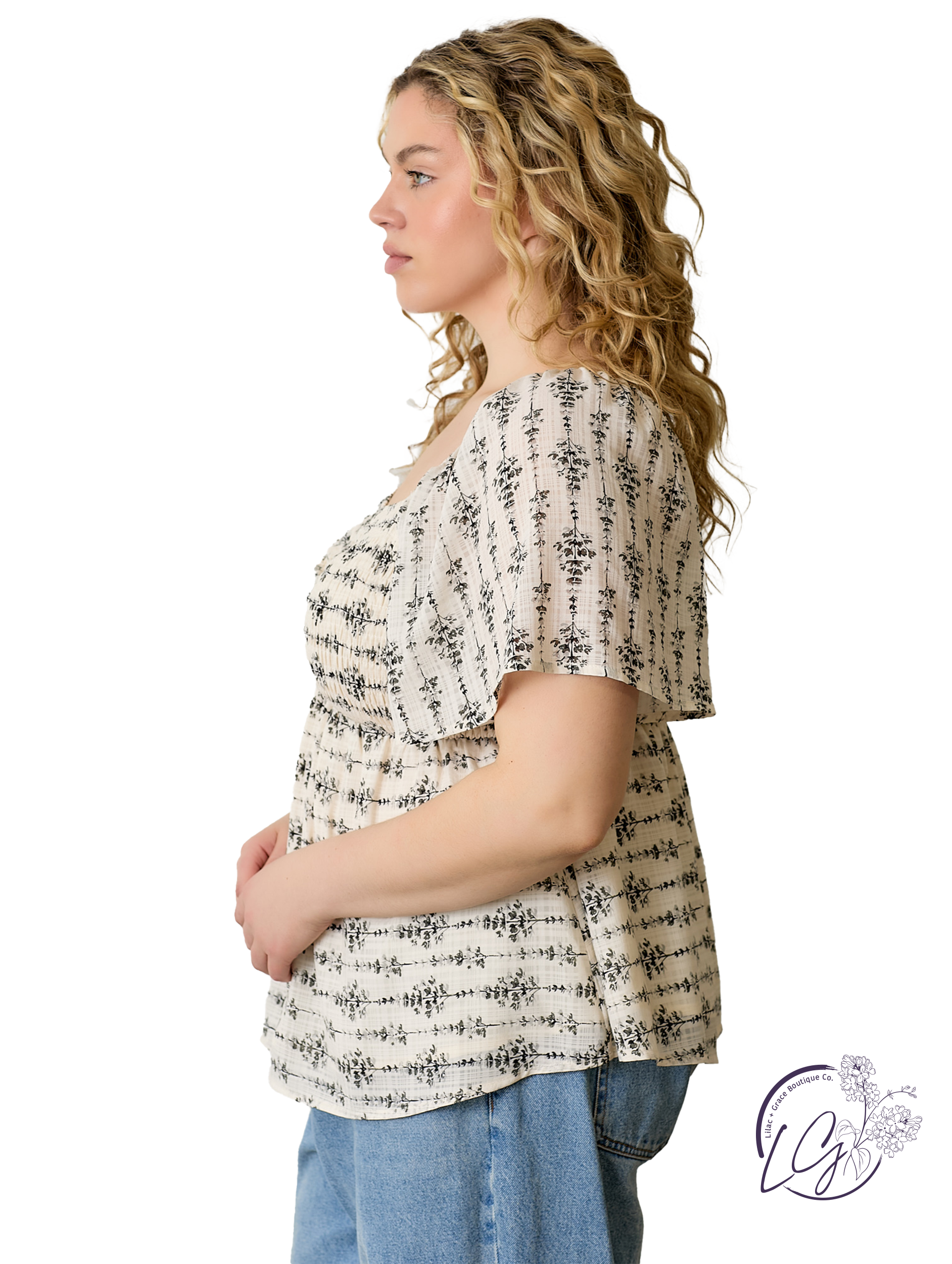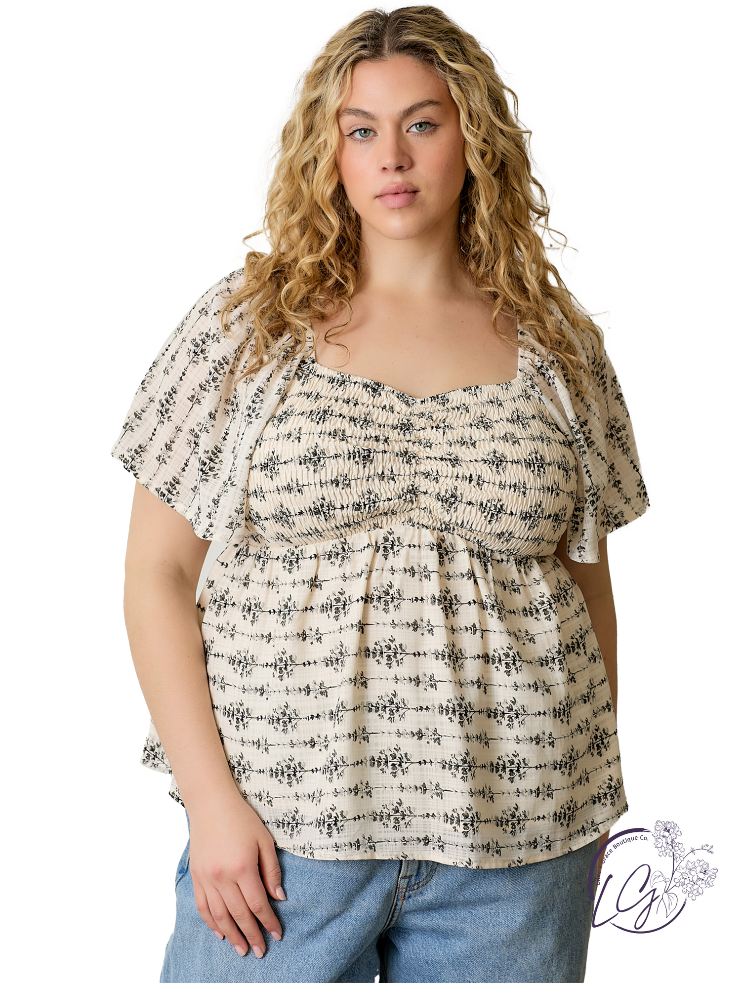Soft and feminine, this smocked front flutter sleeve top brings delicate texture to your everyday look. The smocked bodice offers a flattering fit, while the flutter sleeves add gentle movement and a romantic touch. Lightweight and breathable, it’s perfect for warm days or layered looks. Pair it with high-rise denim or a flowing skirt for a balanced, easygoing outfit.