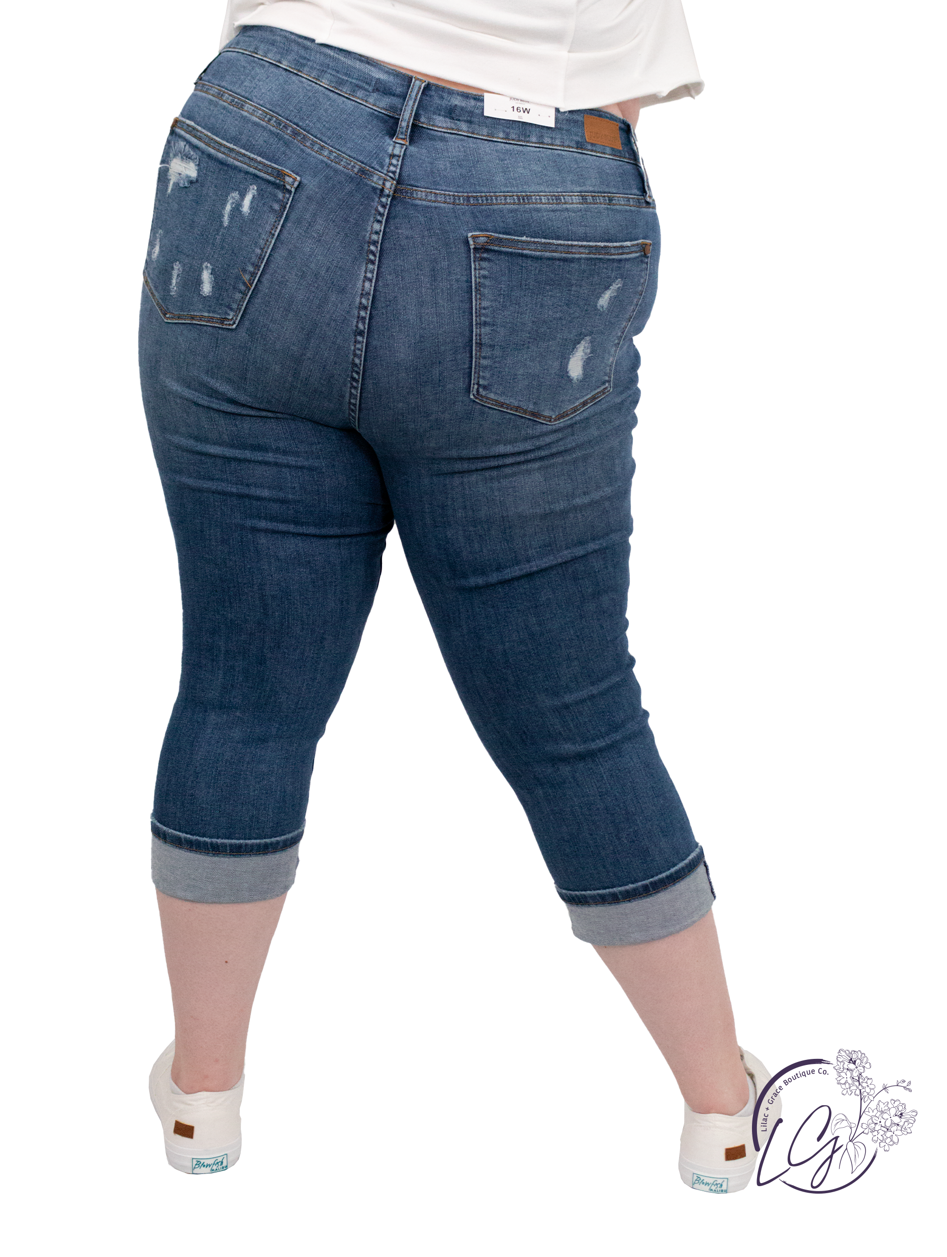 Curvy Cheri Mid-Rise Distressed Capri by Judy Blue