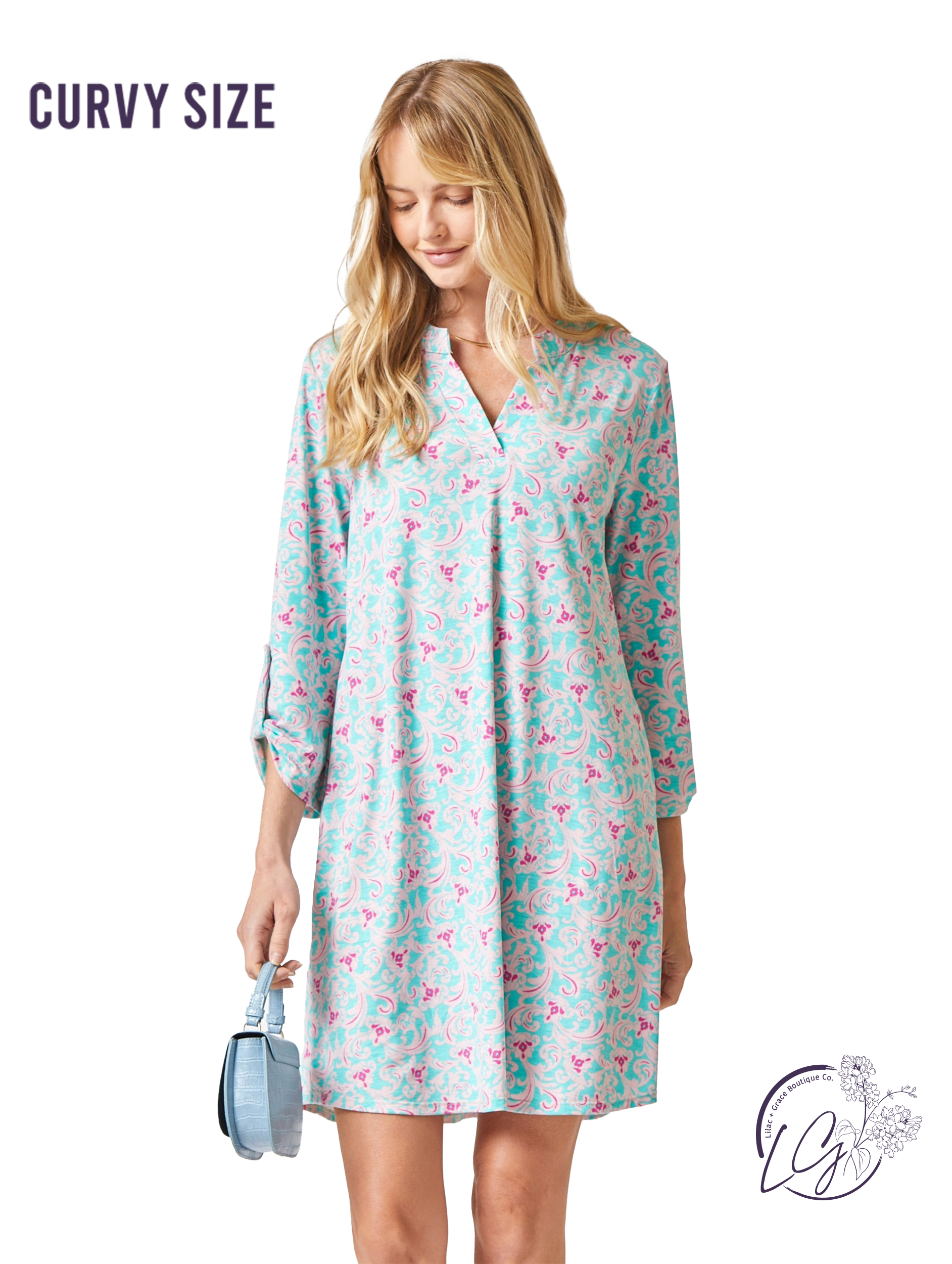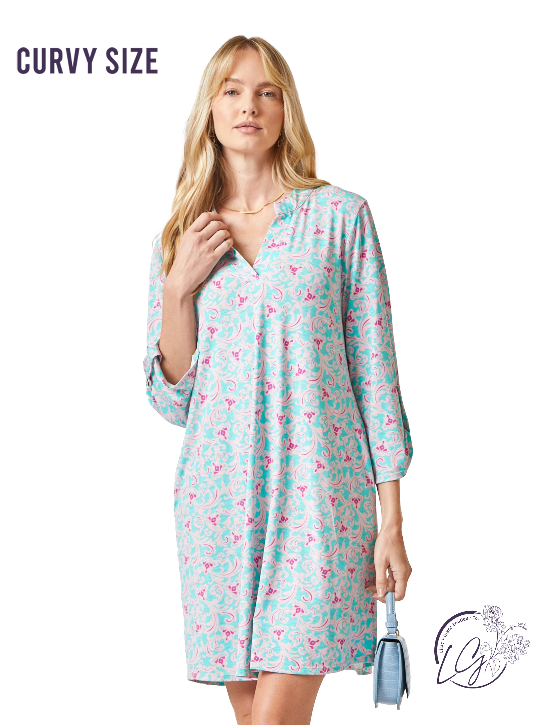 Unleash your inner fashionista with our Curvy Classic A Line Dress! The lizzy neckline and tabbed sleeves add a touch of sophistication to this playful piece. Made from wrinkle-free and stretchy material, this shift dress is comfortable and flattering. Choose from a variety of fun prints to elevate your style game. (No need to worry about sheerness - it's non sheer!)