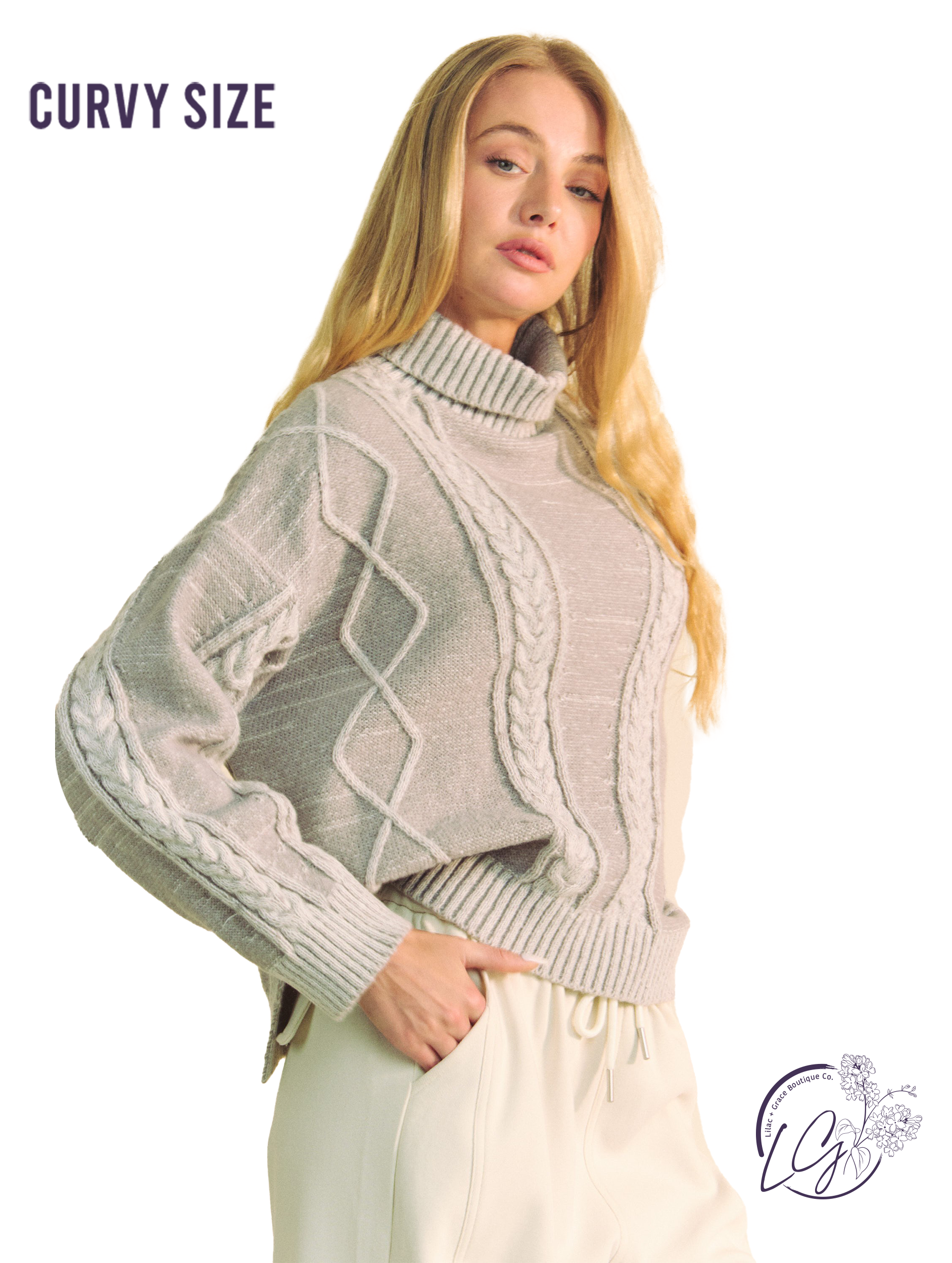 Curvy Cozy Loop Cable Knit Turtleneck Sweater