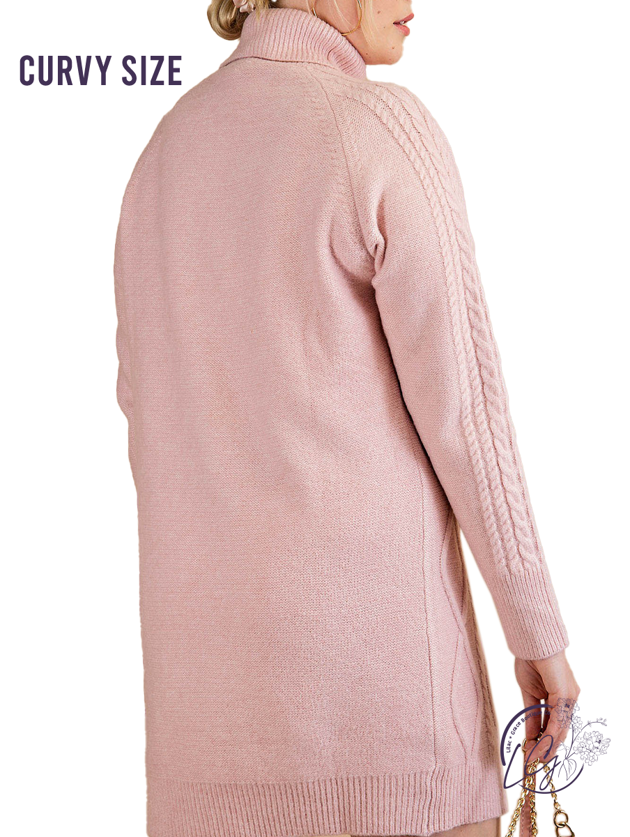 Curvy Soft Cable Knit Bubble Sleeve Sweater