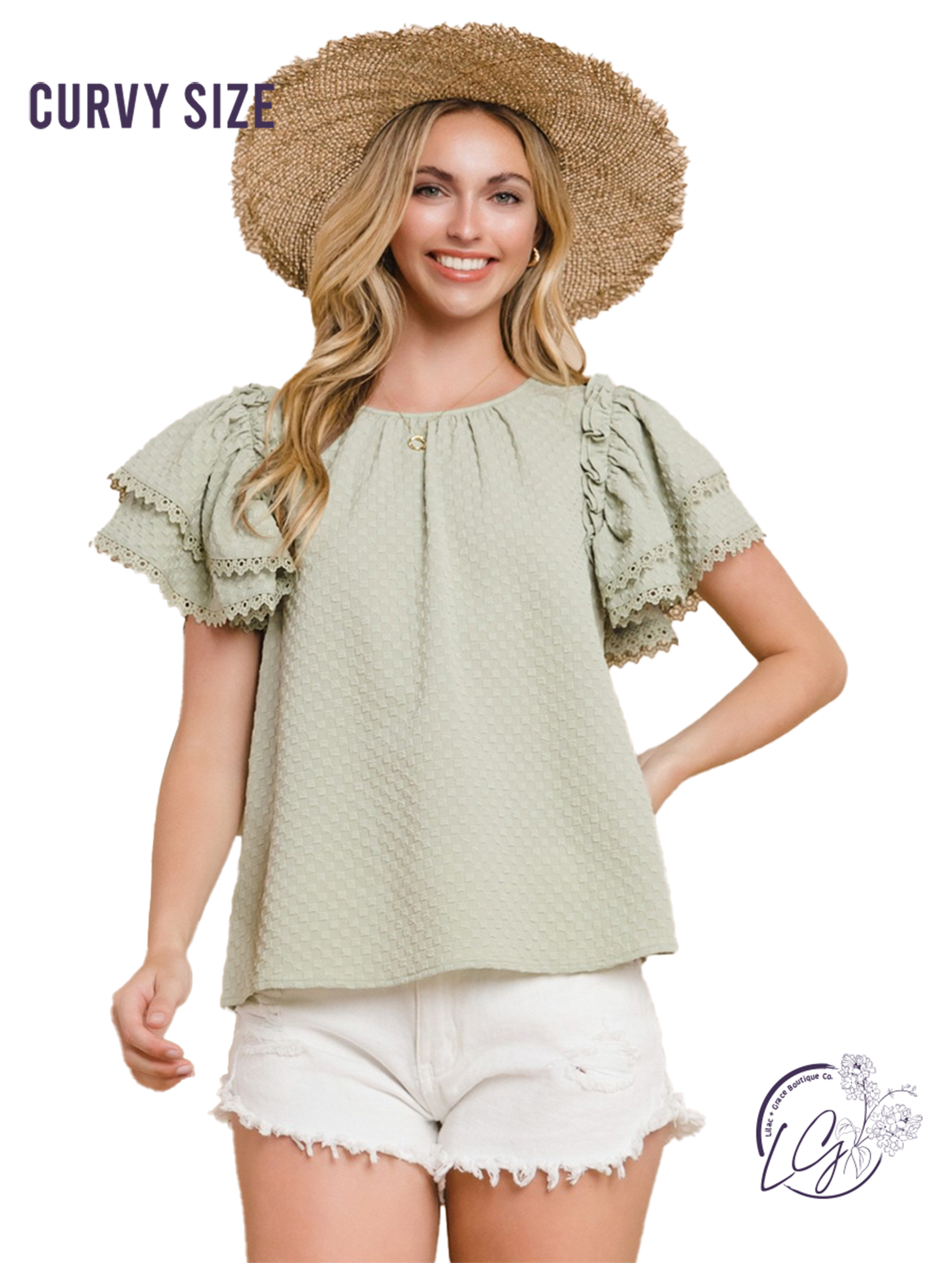 Embrace the fresh feel of this jacquard blouse for a stylish start to your morning! With its tiered ruffle sleeves and round neck, this blouse will bring a touch of elegance to any outfit. The delicate keyhole closure at the back adds a charming detail. Make every morning feel like a fresh, new day with this lovely blouse!