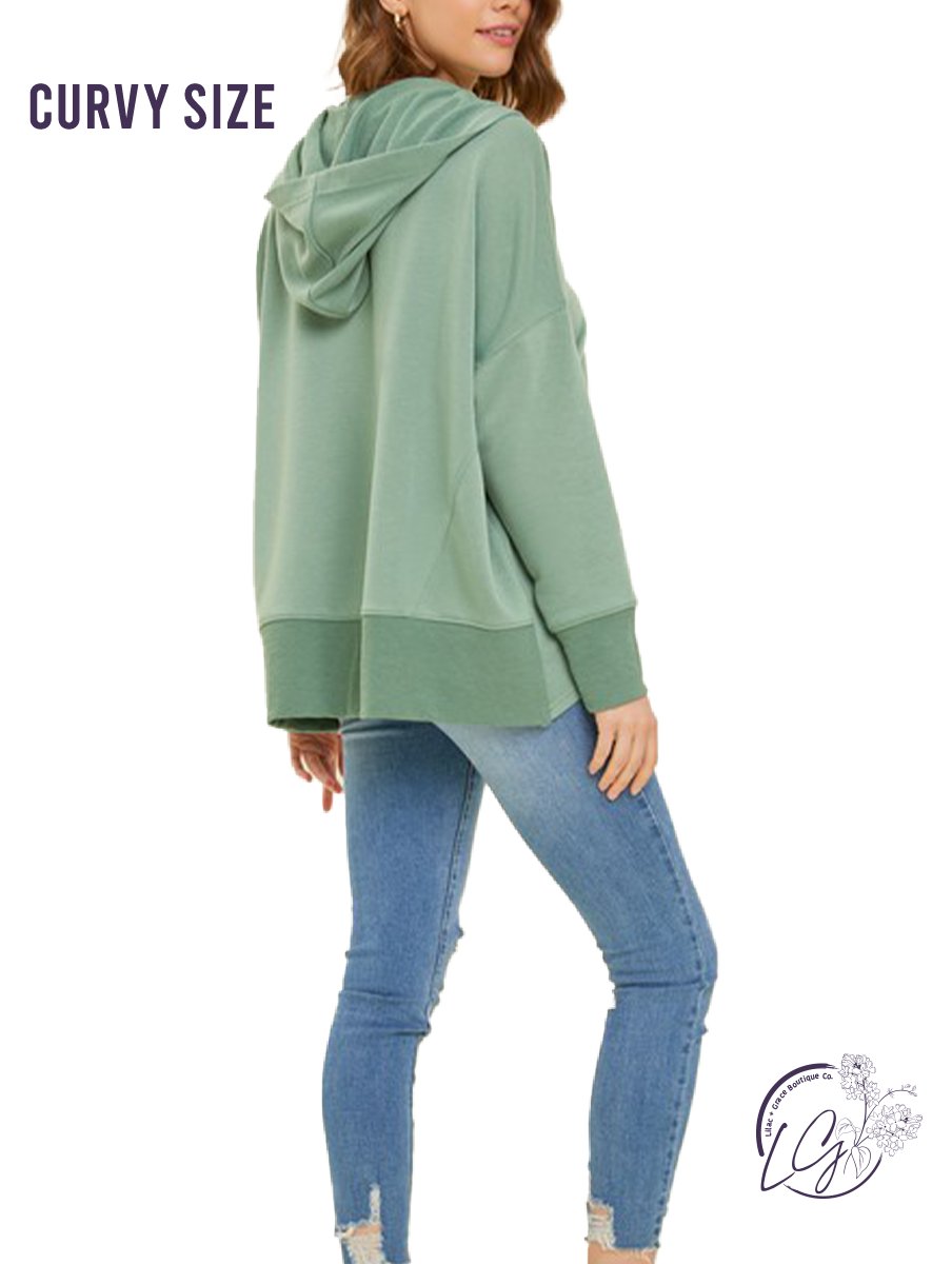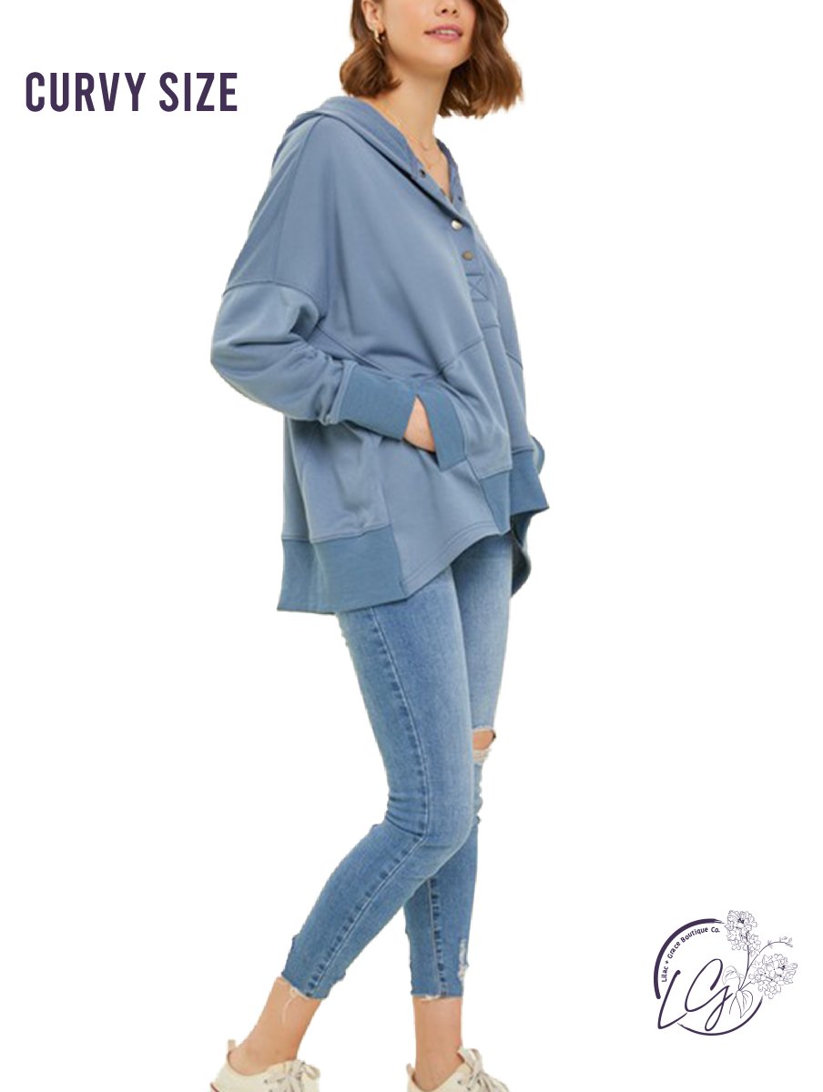 Introducing the "Curvy Gentle Drift Hooded Sweater," a cocoon of comfort and style that takes loungewear to new heights. This oversized French terry pullover is designed for those who appreciate the fusion of relaxation and modern aesthetics.