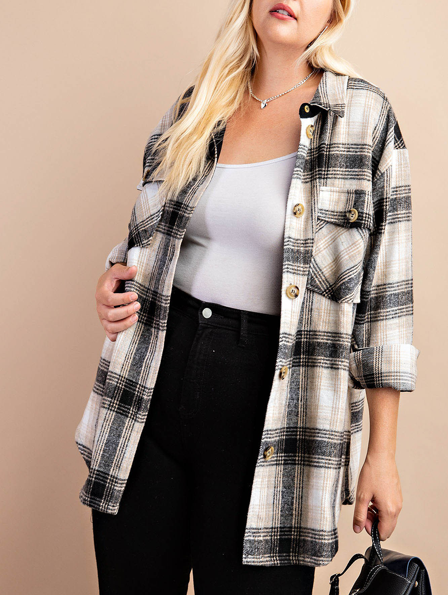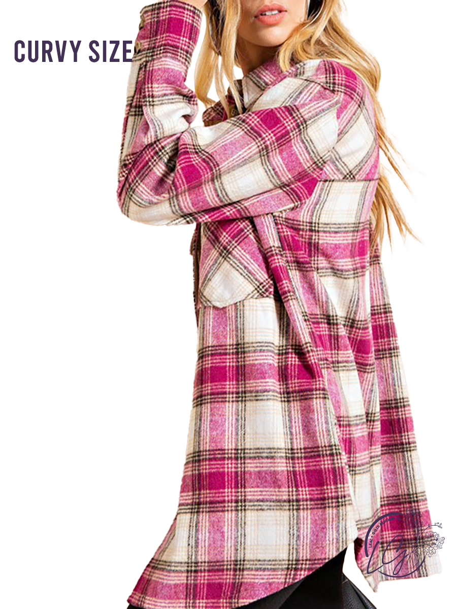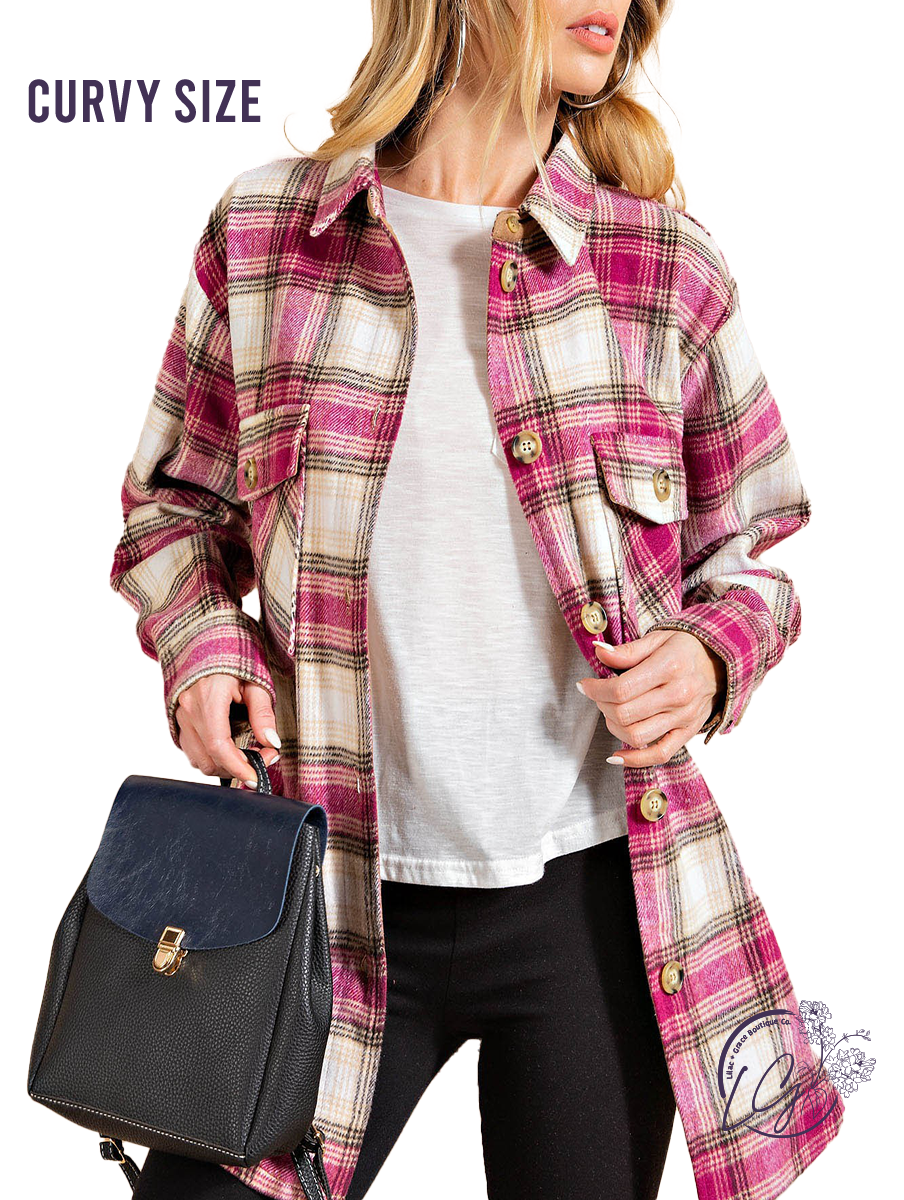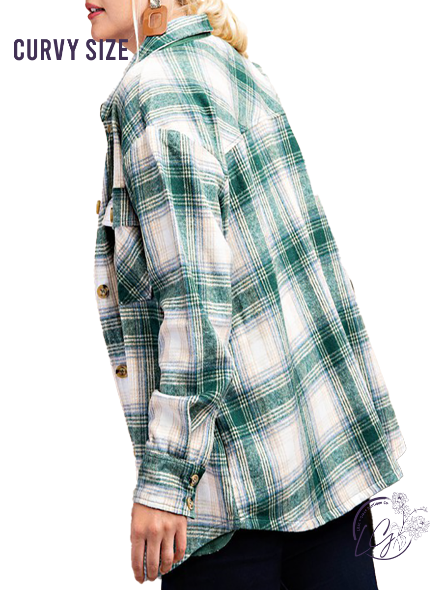 The "Curvy Just What I Need Shacket" is the perfect combination of a shirt and a jacket, providing exactly what you need for those in-between weather days when you want to stay comfortable and stylish. This shacket is a versatile and functional garment that seamlessly blends the best features of a shirt and a lightweight jacket.
