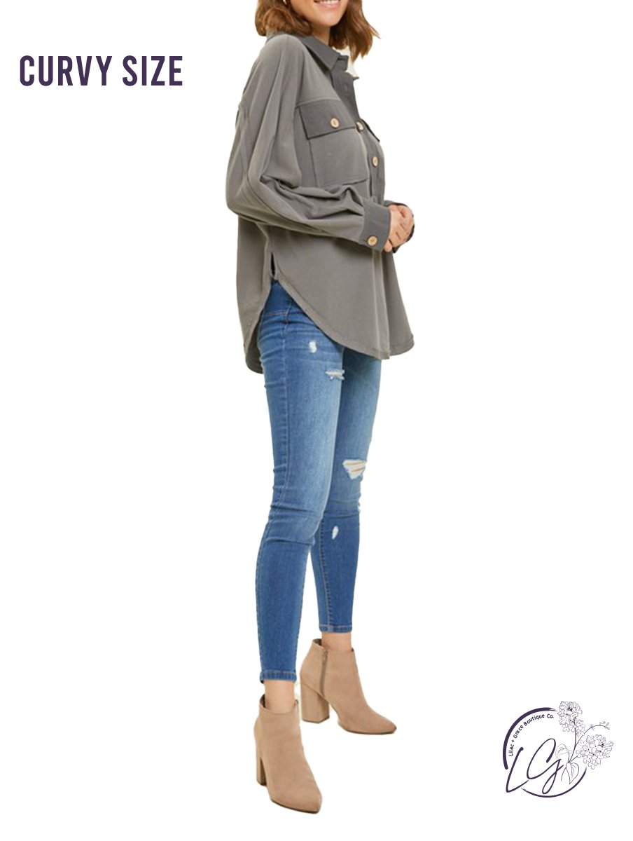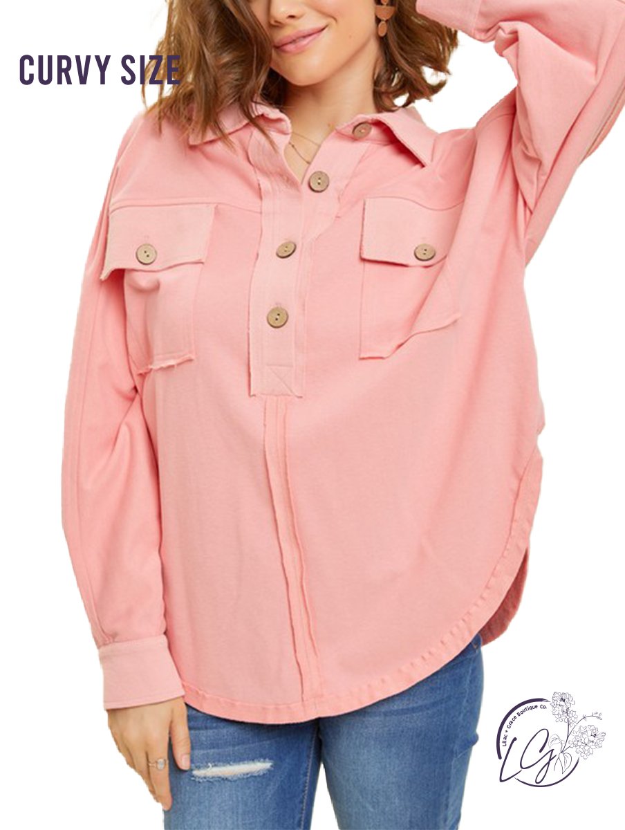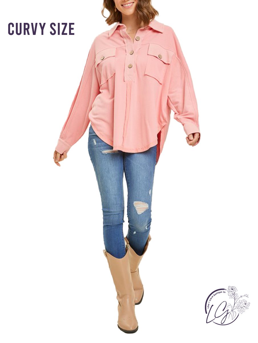 Introducing the "Curvy Leisure Luxe Oversized Half-Zip Pullover," where comfort meets sophistication in a perfect blend of style and ease. This French terry pullover is designed for those who appreciate the luxurious feel of leisure wear while maintaining a chic and modern aesthetic.