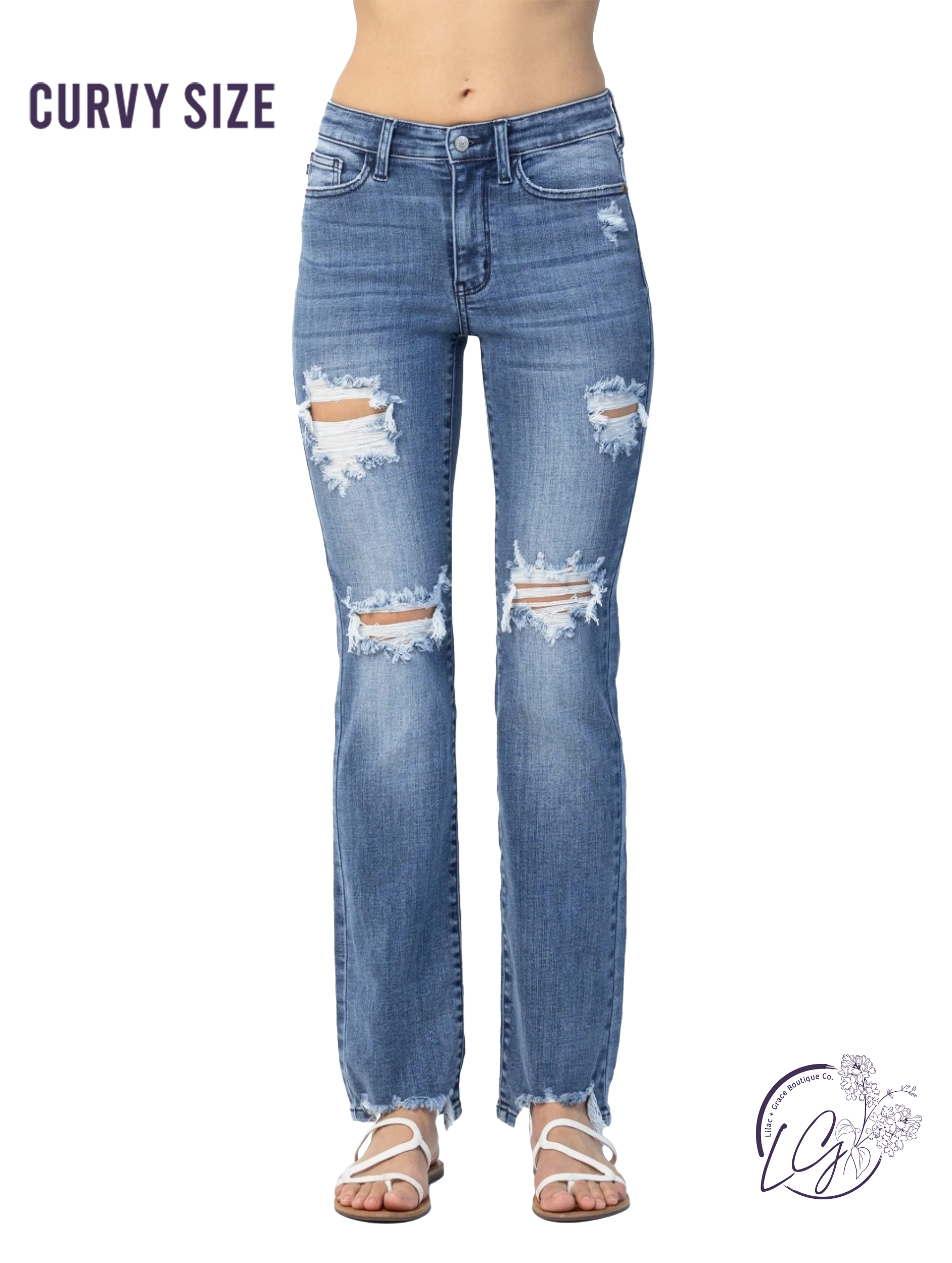 Curvy Marian Destroyed Straight-Mid Rise Jeans by Judy Blue