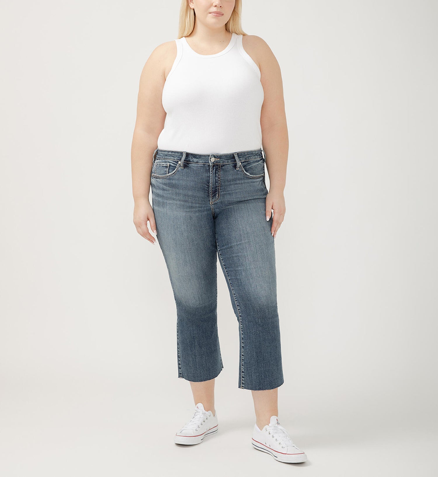 Suki is the best-selling Silver Jeans Co.™ curvy fit for good reason. Designed to enhance curves, this pair creates a flattering silhouette with ease in the hip and thigh to hug every angle. The classic mid rise is comfortable, and the contoured waistband ensures a zero-gap fit.