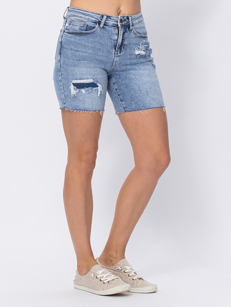 Curvy Rayna High-Rise Patch Shorts by Judy Blue