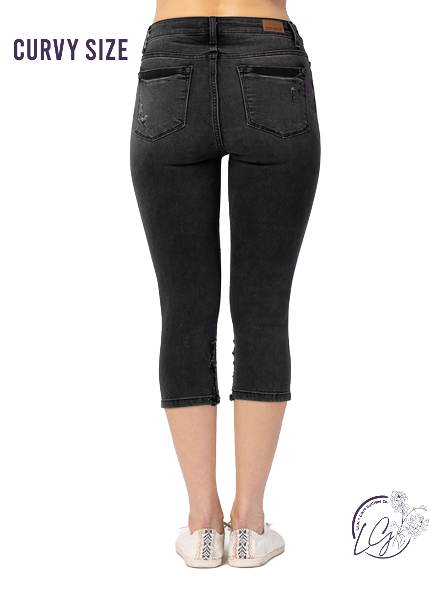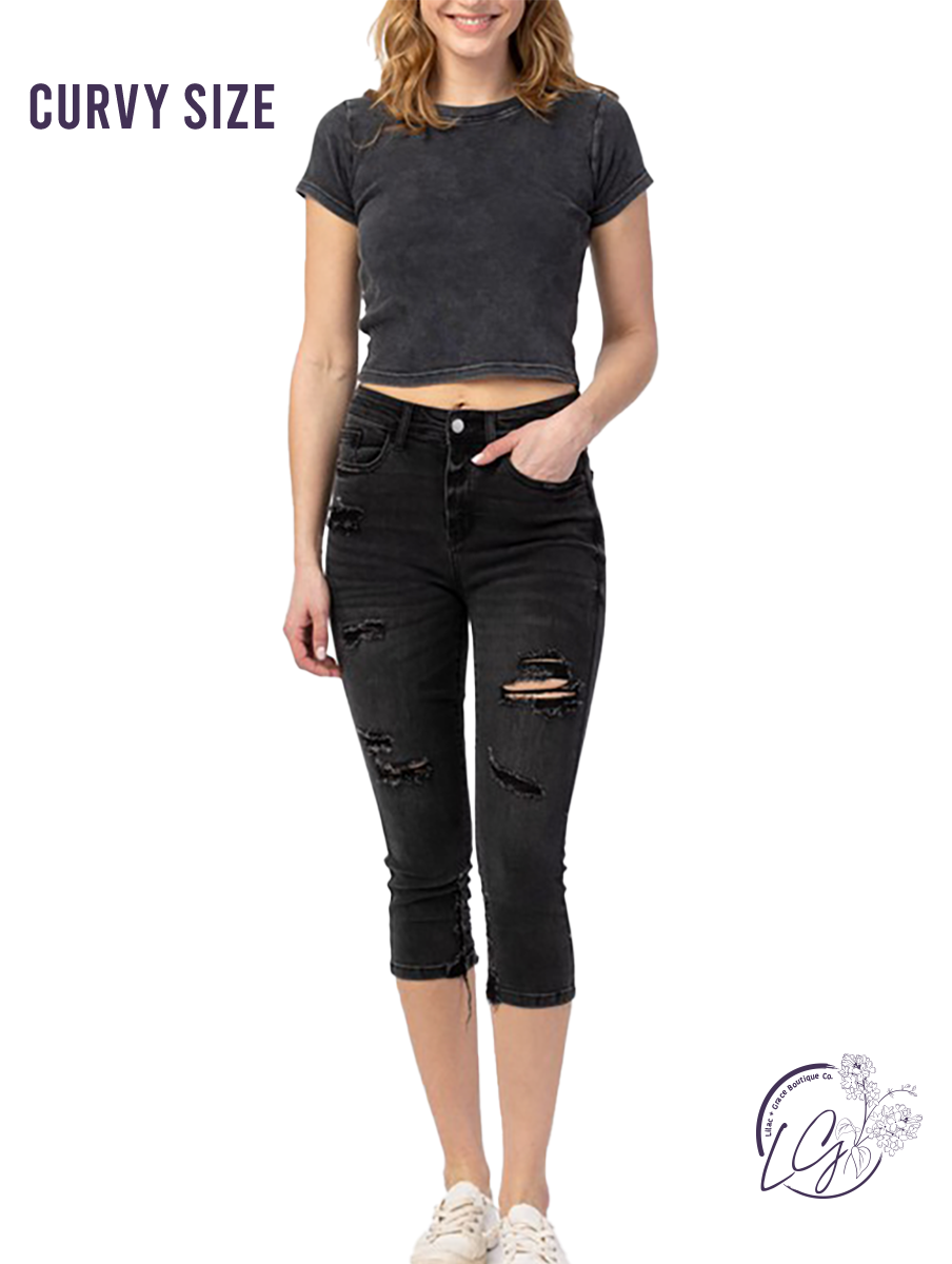 Curvy Remi High-Rise Distressed Capri by Judy Blue