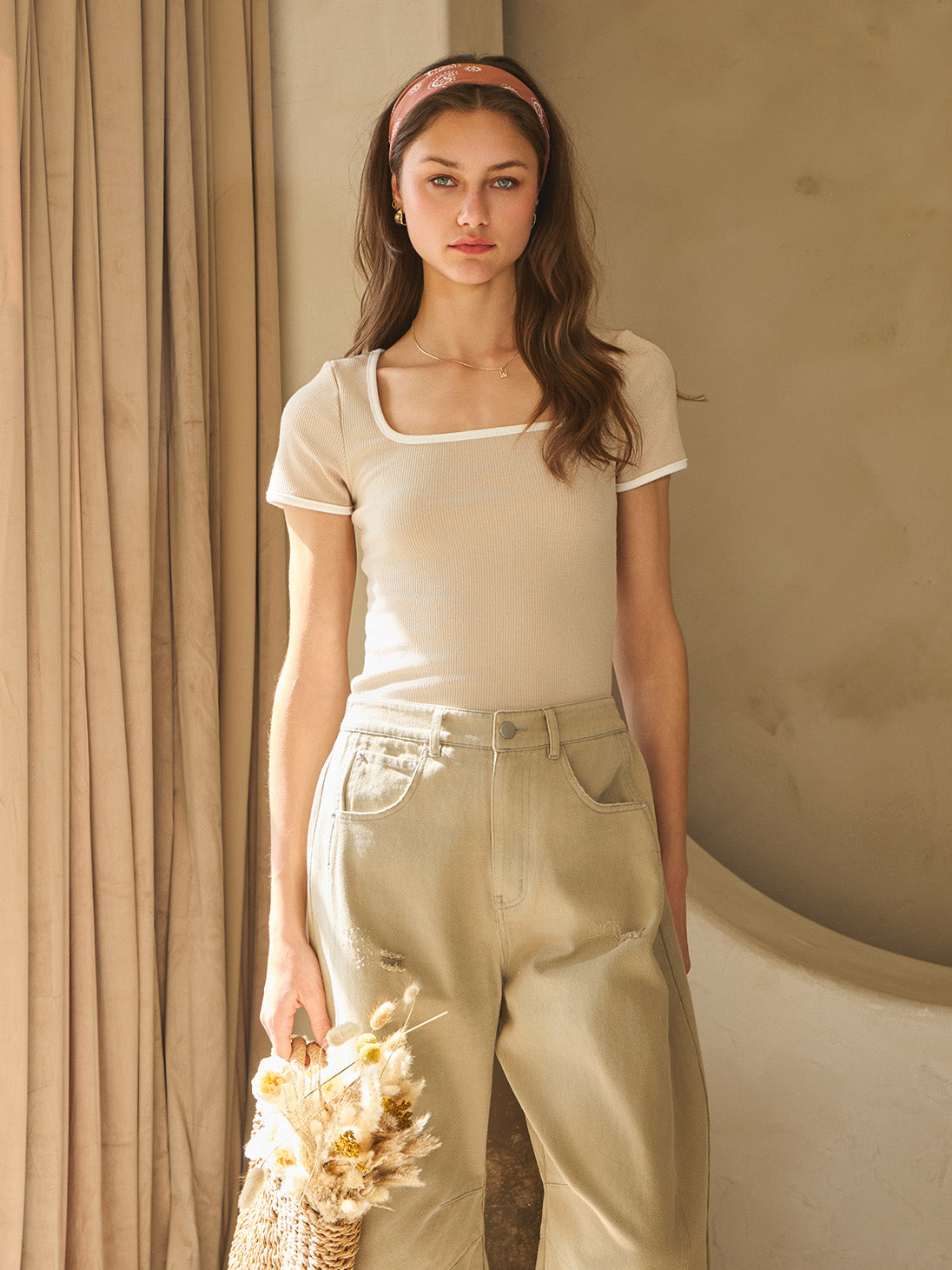 Meet your new favorite top! This ribbed short sleeve gem features a flirty square neckline with fun contrast trim, turning a simple shirt into a style statement. Snug yet stretchy, it hugs you in all the right places without sacrificing comfort. Dress it up or down—tuck it into your jeans or skirts for an effortlessly polished vibe. Light enough to layer, breezy enough to wear solo, it’s your all-season ticket to laid-back cool.