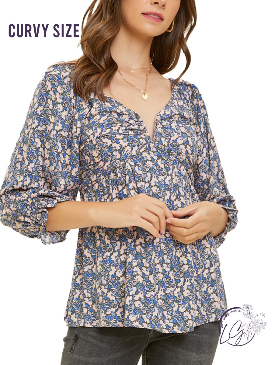 The "Curvy Sun-kissed Petals Blouse" is a radiant and feminine piece that effortlessly captures the essence of a sunlit garden in full bloom. Crafted with a delicate floral print, this split neck blouse is adorned with charming petals and blooms that evoke a sense of natural beauty and grace.