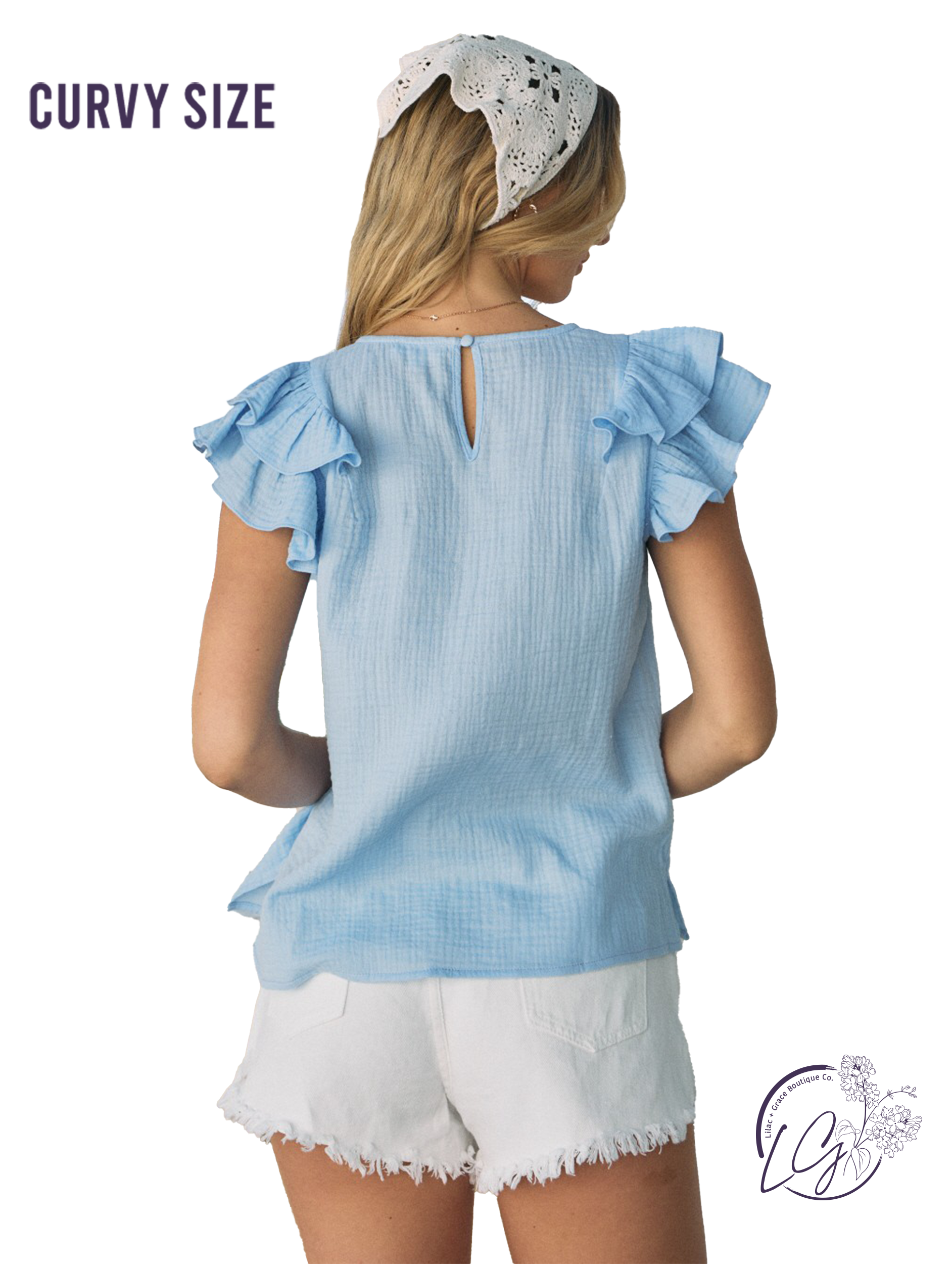 Curvy Sunday Brunch Ruffle Sleeve Blouse