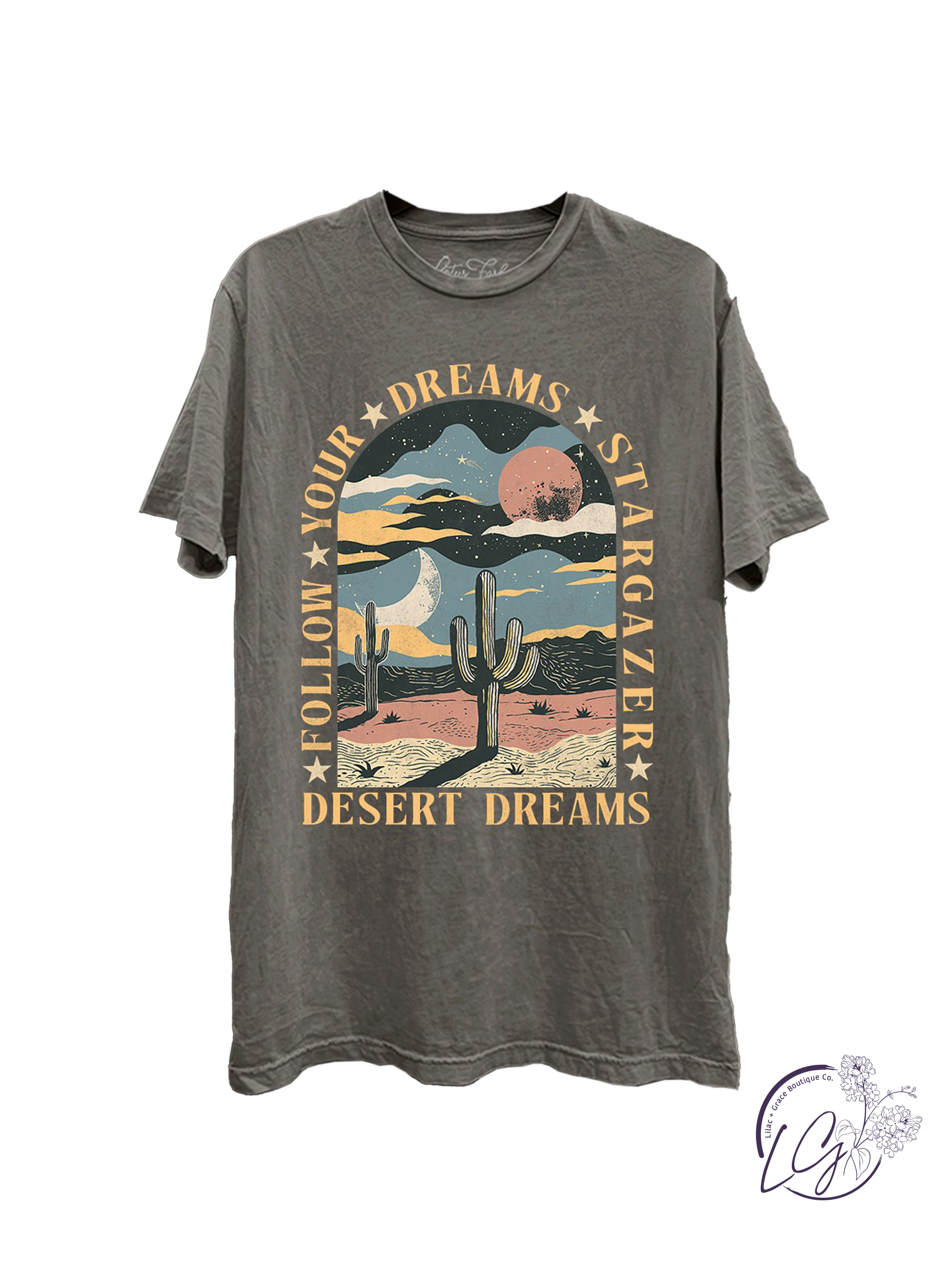 The Lotus Boyfriend Graphic Tee in Mineral Washed cotton channels a dreamy western spirit with lived-in comfort. Made from soft 100% cotton, it features a relaxed fit, open crew neckline, and slightly dropped sleeves. The “Desert Dreams” hand-drawn graphic is a Lotus exclusive, silk screen printed in-house at their Los Angeles printing studio—crafted start to finish with care.