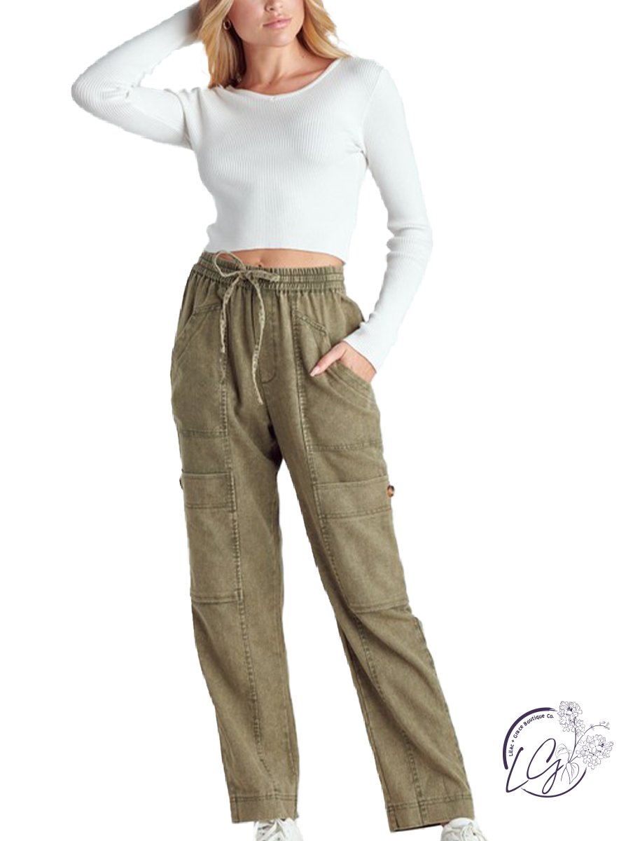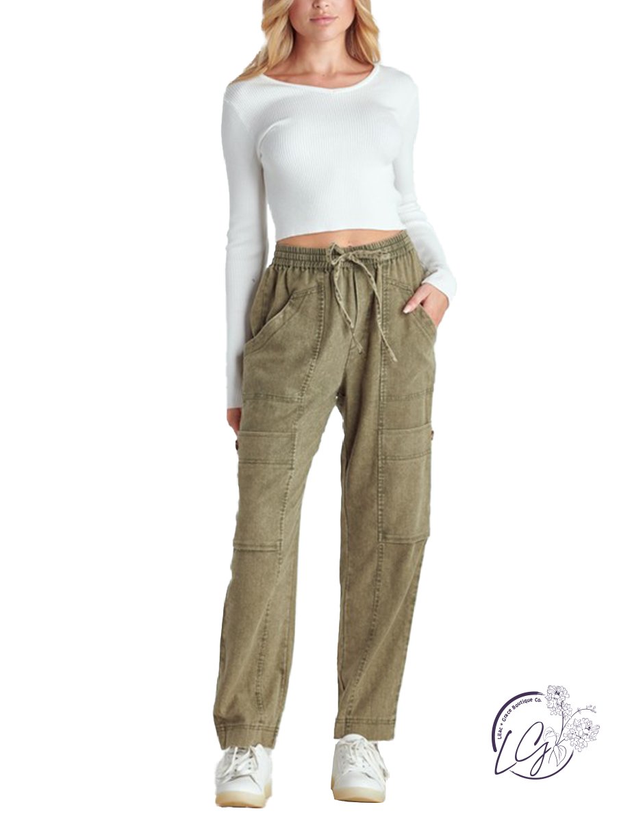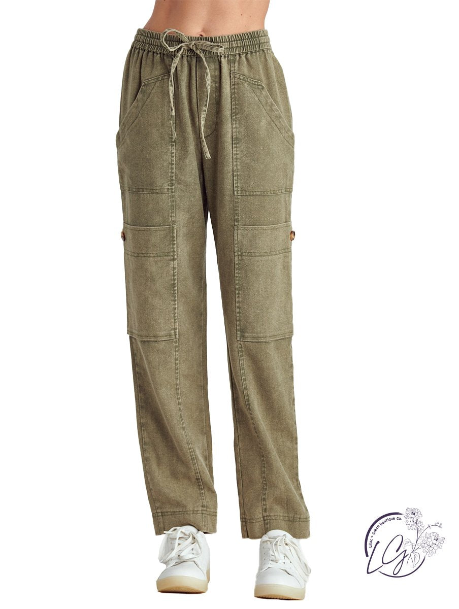 Introducing the "Earthy Essence Cargo Pants," where comfort meets rugged style in a distinctive mineral-washed finish. Crafted with meticulous attention to detail, these cargo pants are a fusion of urban utility and earthy charm.