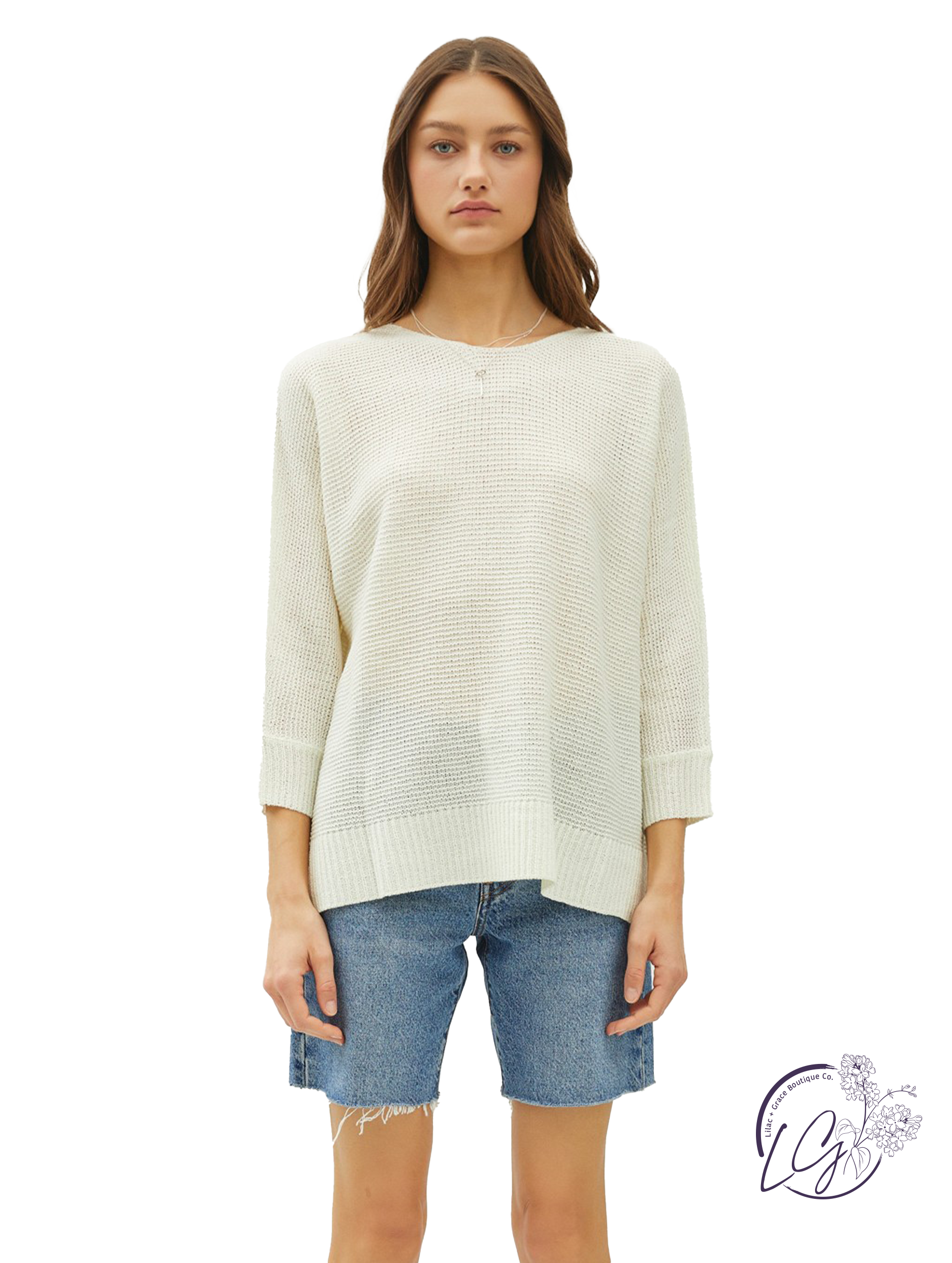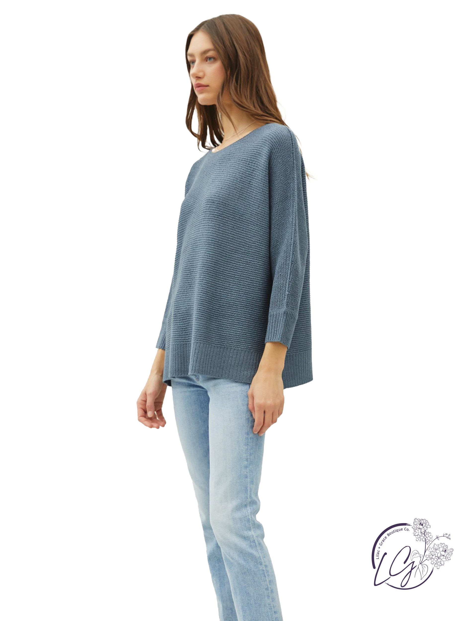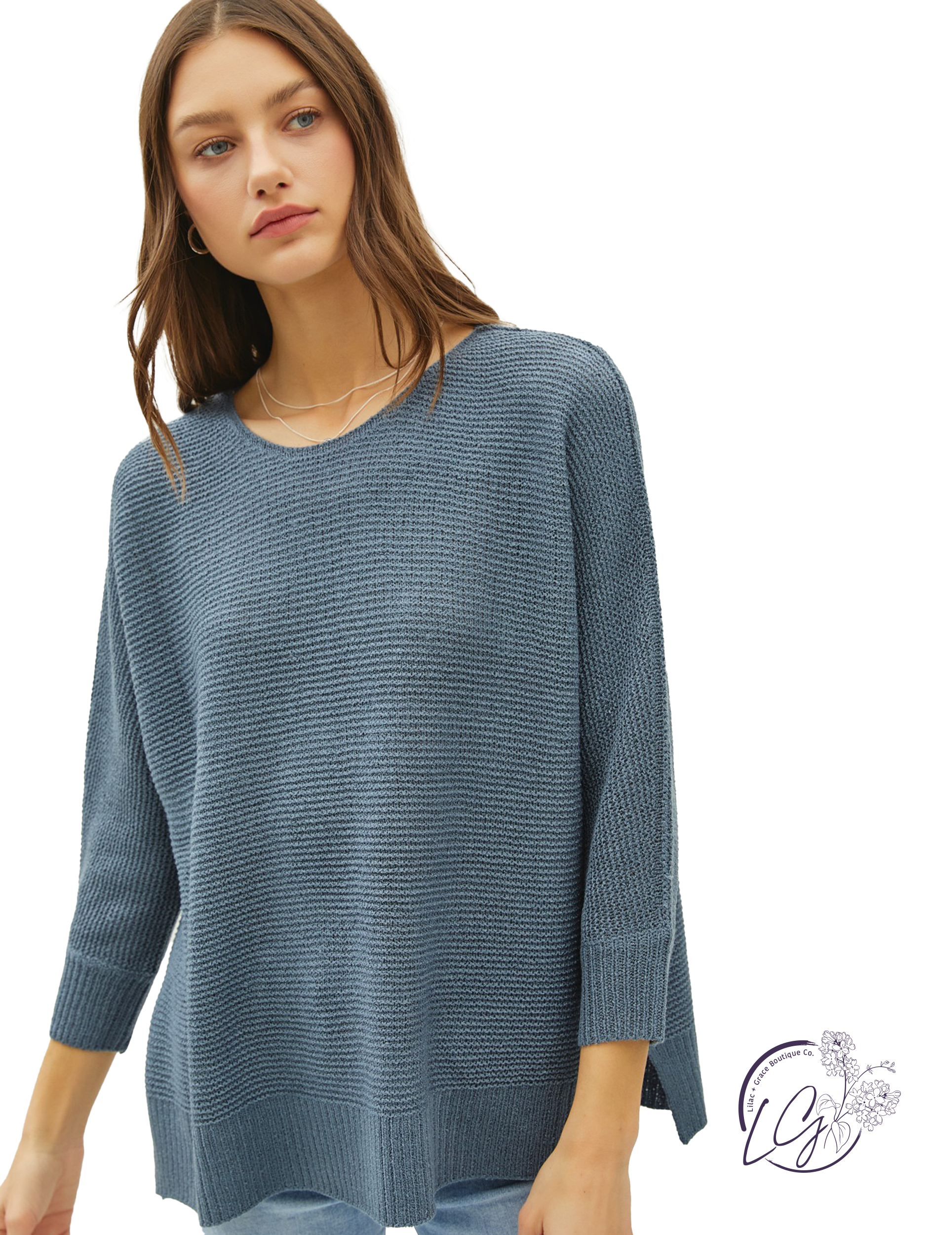 Experience timeless style and cozy comfort with our Enjoy The Ride 3/4 Sleeve Sweater. Made with ribbed knit fabric, a classic round neck, and dolman sleeves, this pullover sweater is perfect for any occasion. With side slits and a boxy fit, it's both flattering and versatile. Take on the day in style!