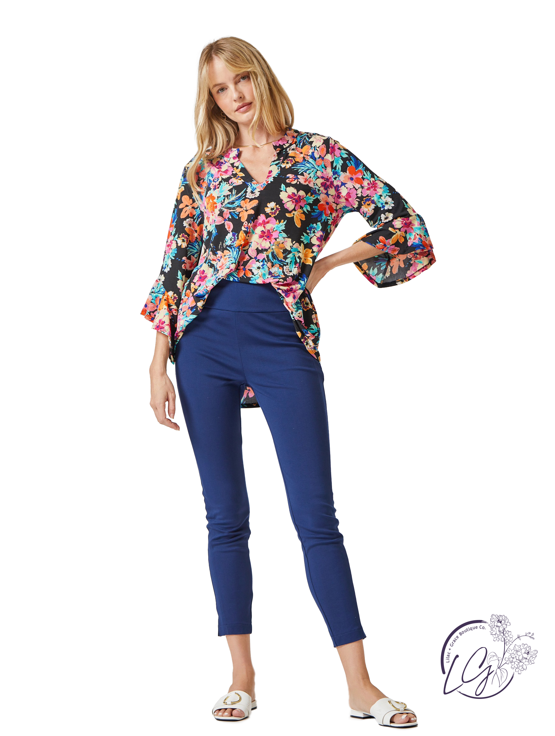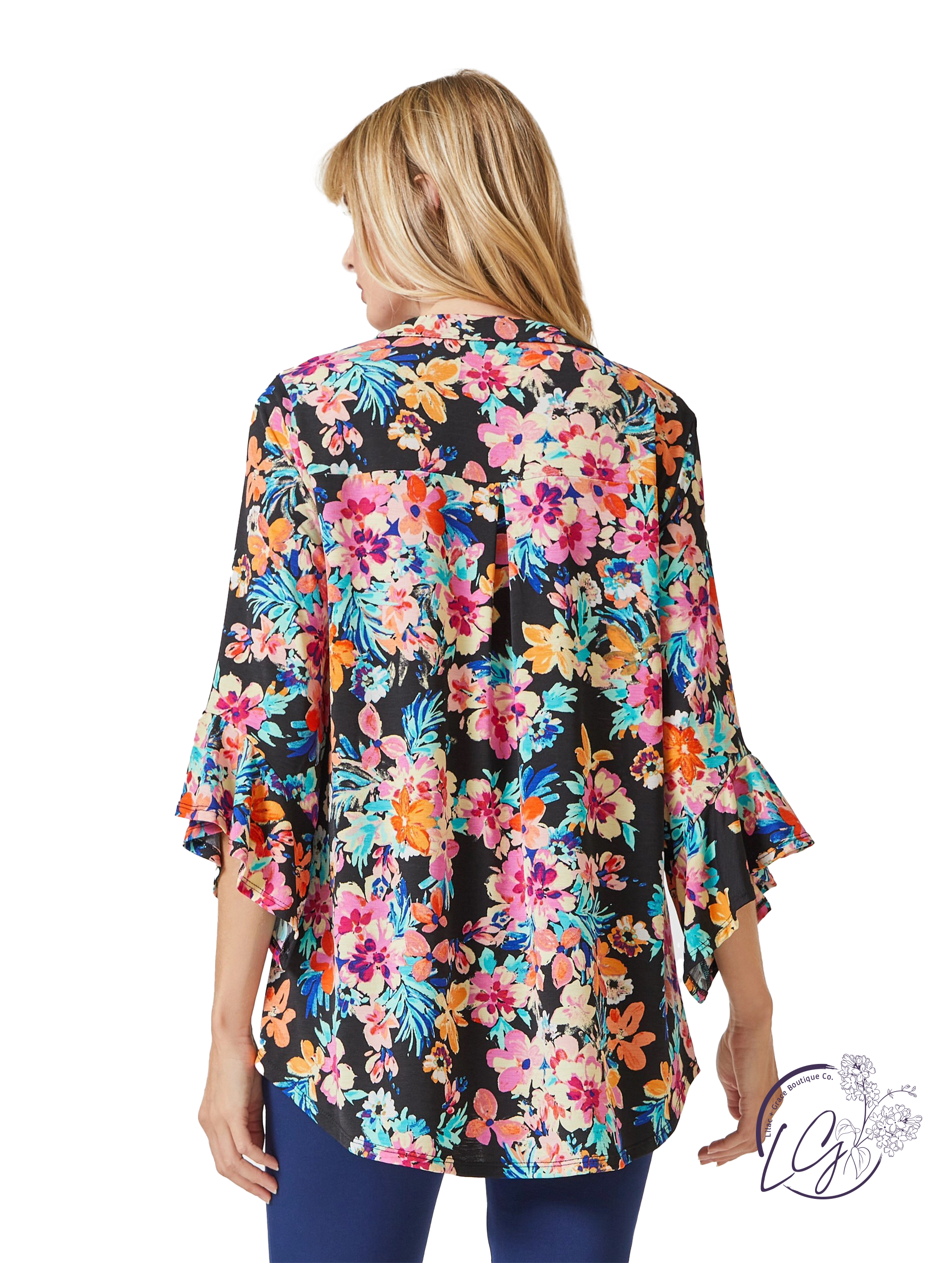 Indulge in the beauty and elegance of our Floral Faith Blouse. Adorned with a medallion print and flirty bell sleeves, this versatile blouse is perfect for any occasion. The Lizzy neckline adds a touch of sophistication while the wrinkle-free fabric ensures effortless style. Experience easy, flowy comfort with this must-have piece.