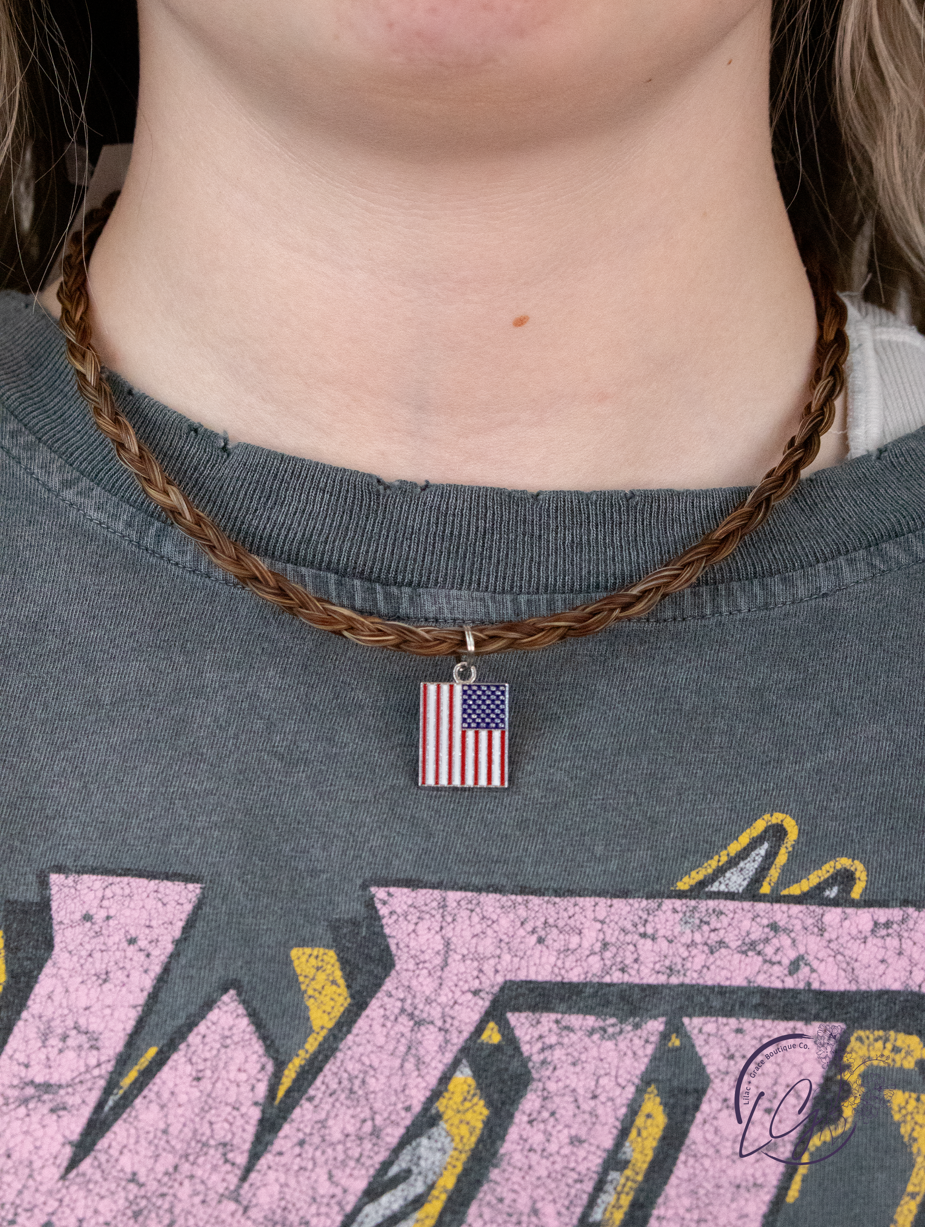 Get your patriot on with this Flag pendant that hangs from a genuine horsehair spiral braided neckwear, specifically designed for men.
