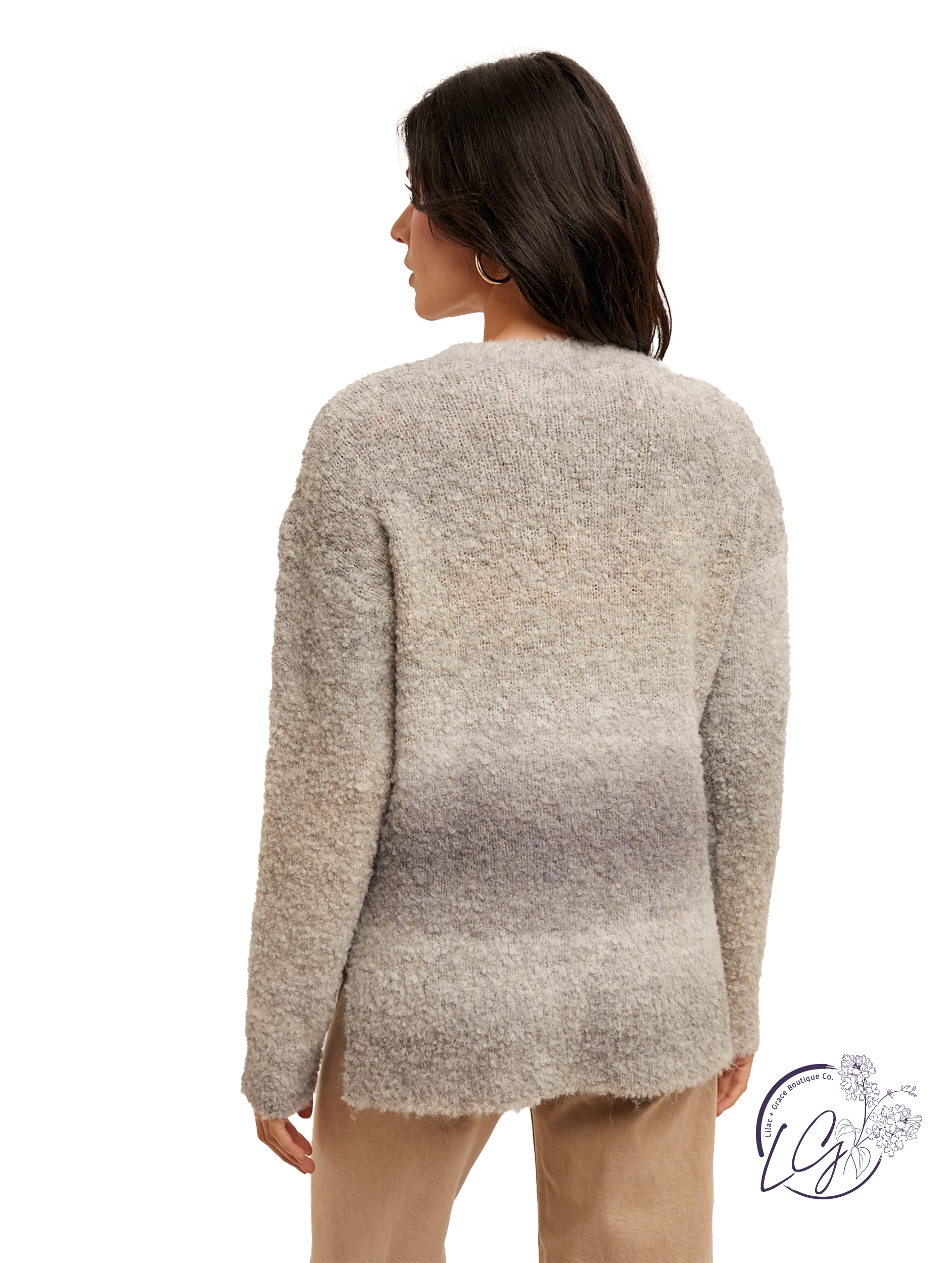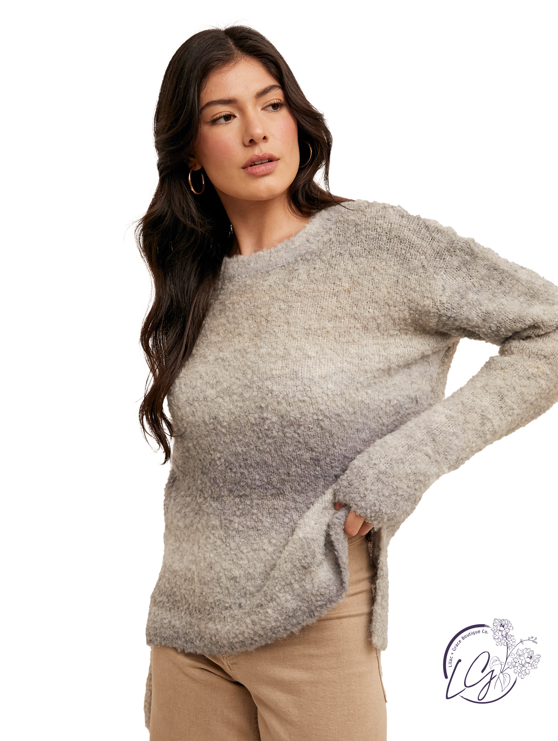Embrace the thrill of the unknown with our Frost On Glass Sweater. This bold, crew neck sweater features a boucle textured ombre design that adds a touch of adventure to your wardrobe. Don't be afraid to take a risk and stand out with this unique sweater!