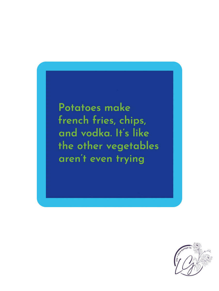 Crafted from materials like cork, wood, or durable absorbent materials, these coasters protect your surfaces from drink spills while providing a source of entertainment for you and your guests. The humorous quotes often cover a wide range of topics, from everyday life and pop culture references to sarcasm and puns.