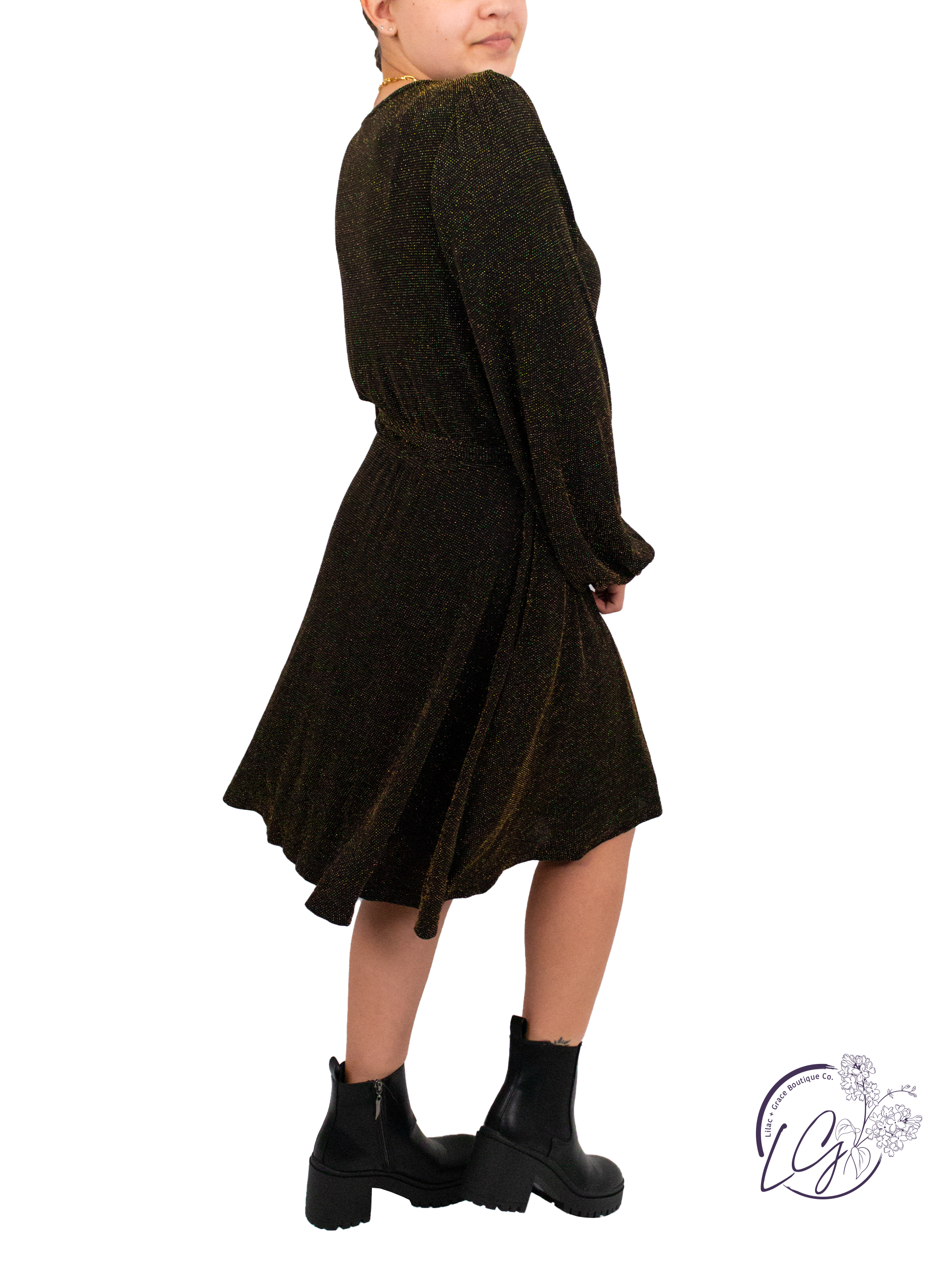 The Glimmering Metallic Dress is an exquisite and eye-catching garment that effortlessly combines glamour and style. Crafted with attention to detail, this dress is designed to make a statement and turn heads at any special occasion or event. The glimmering metallic nature of the dress adds a touch of opulence and sophistication to any ensemble. It is a perfect choice for formal events, parties, or evening occasions when you want to make a dazzling entrance. The dress is designed to make you feel like the center of attention and exude confidence.