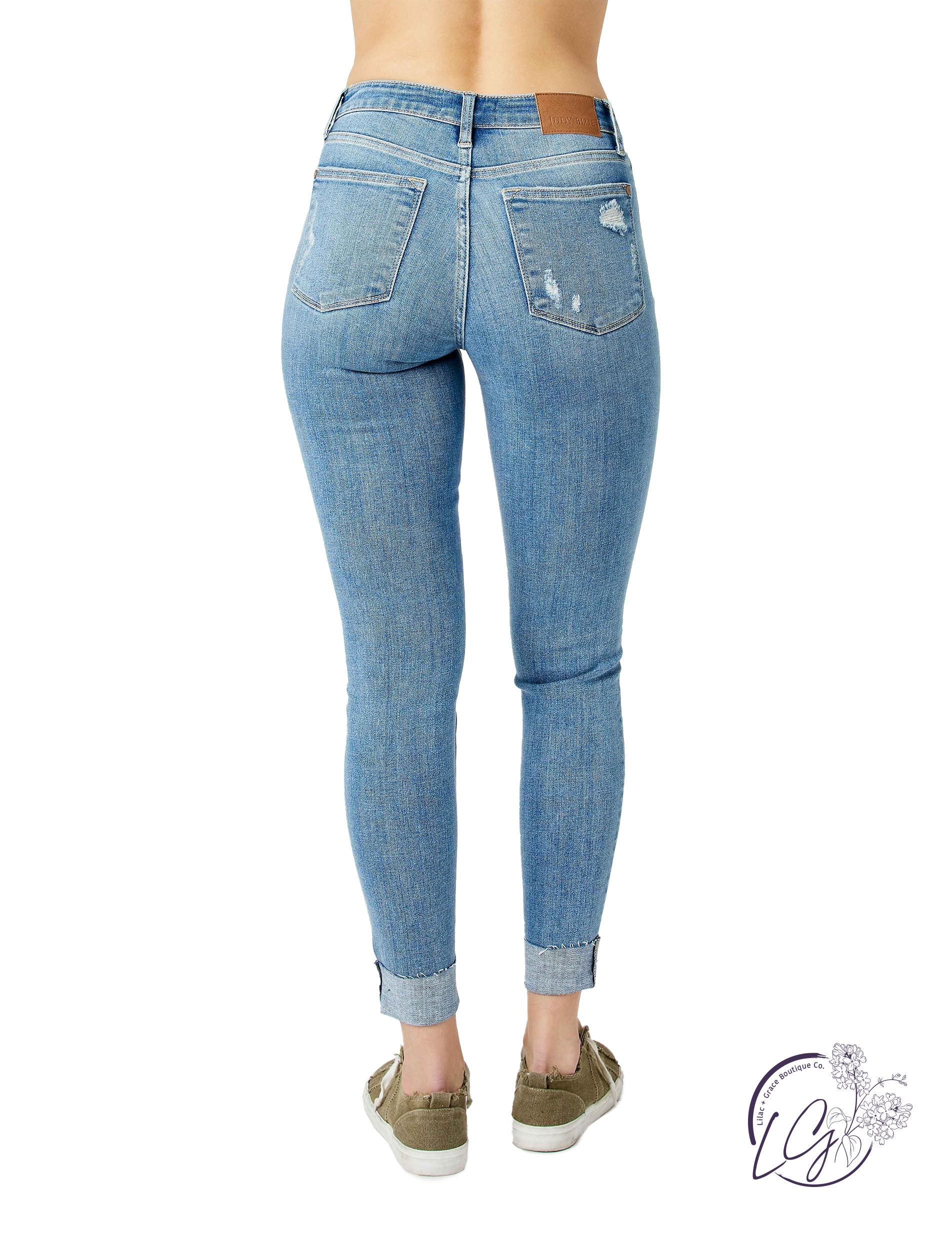 Gloria Mid Rise Destroy & Cuff Skinny by Judy Blue