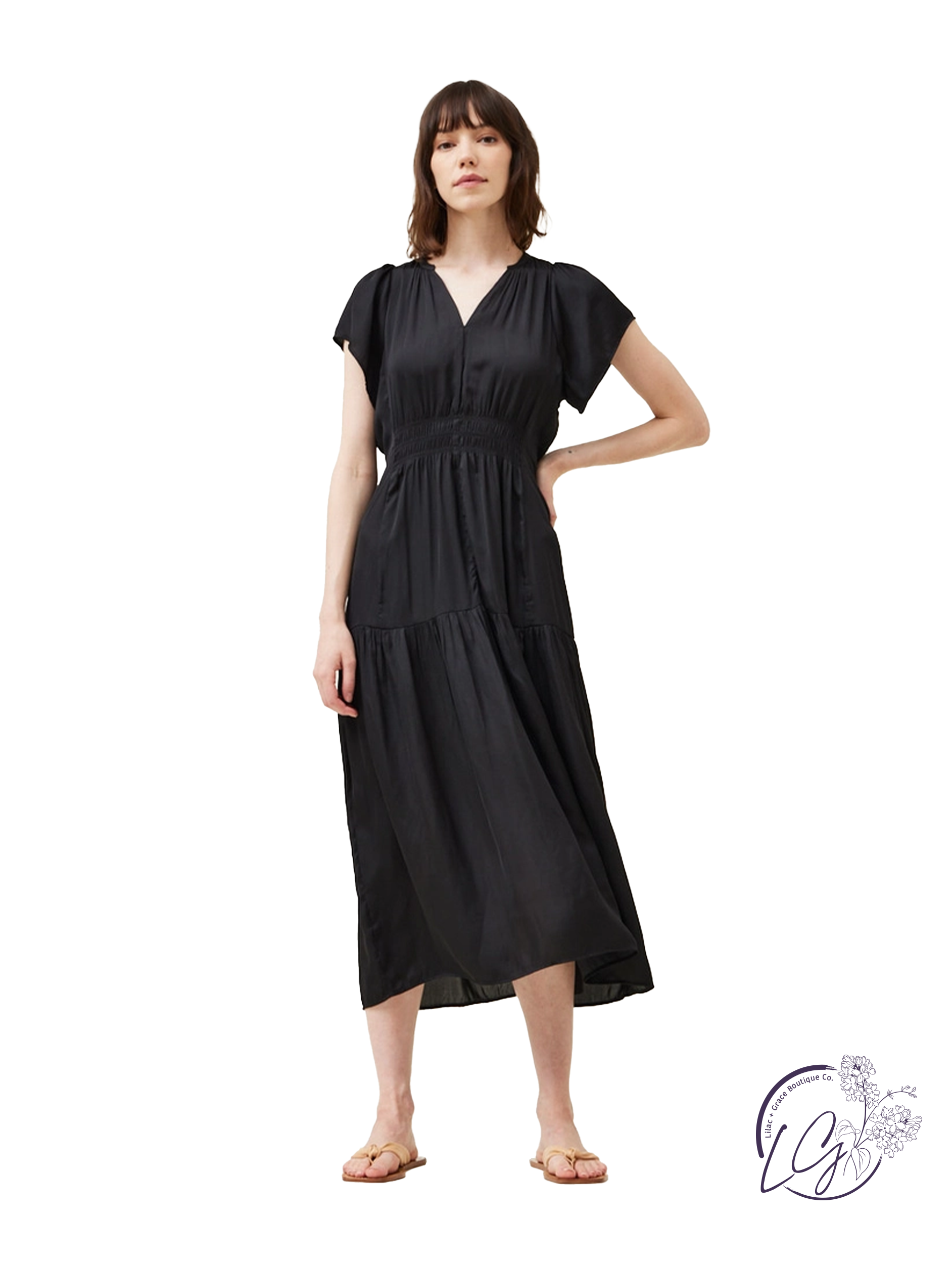 The "Golden Hourglass Midi Dress" is a breathtaking ensemble designed to accentuate your silhouette with timeless elegance and allure. Crafted with meticulous attention to detail, this dress exudes sophistication and luxury, offering a mesmerizing blend of style and glamour.