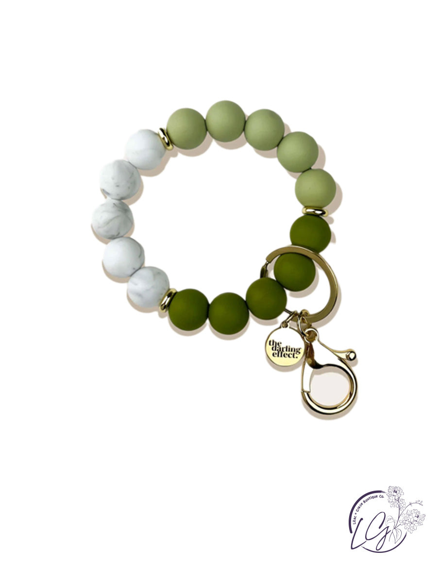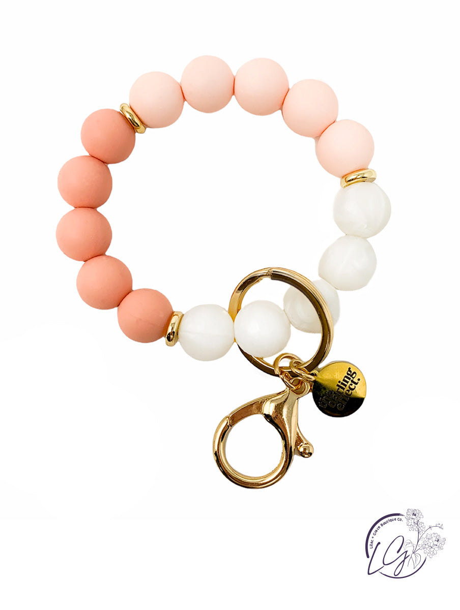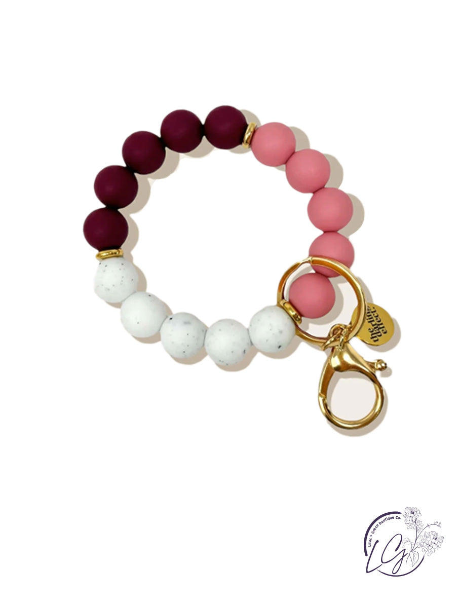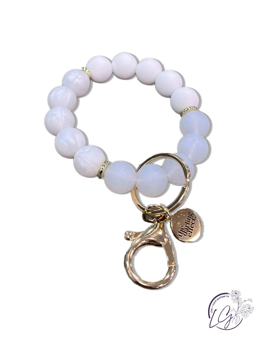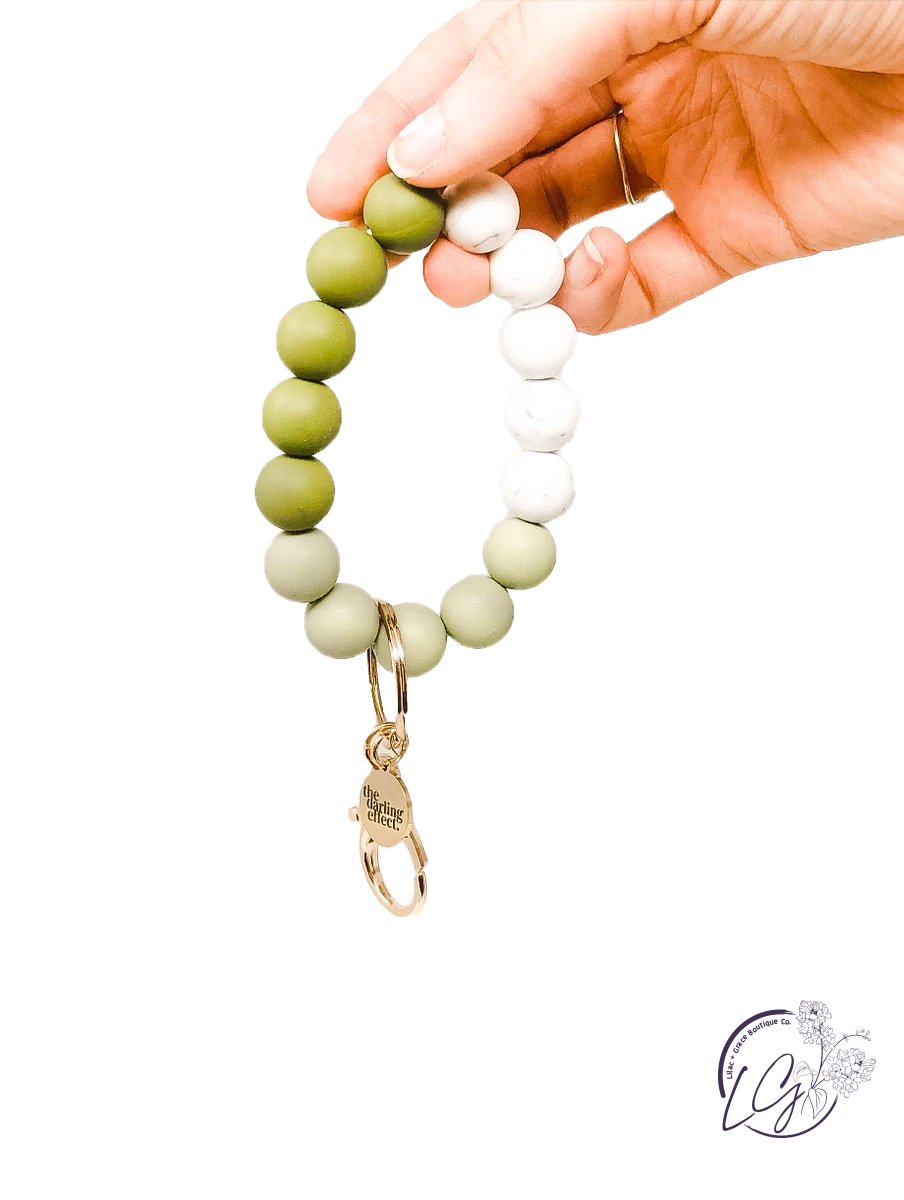 Hang onto your keys with ease. No more digging through your purse, diaper bag, backpack, or gym bag! This stylish and functional wristlet is made of soft silicone beads that slide on and off your hand comfortably.