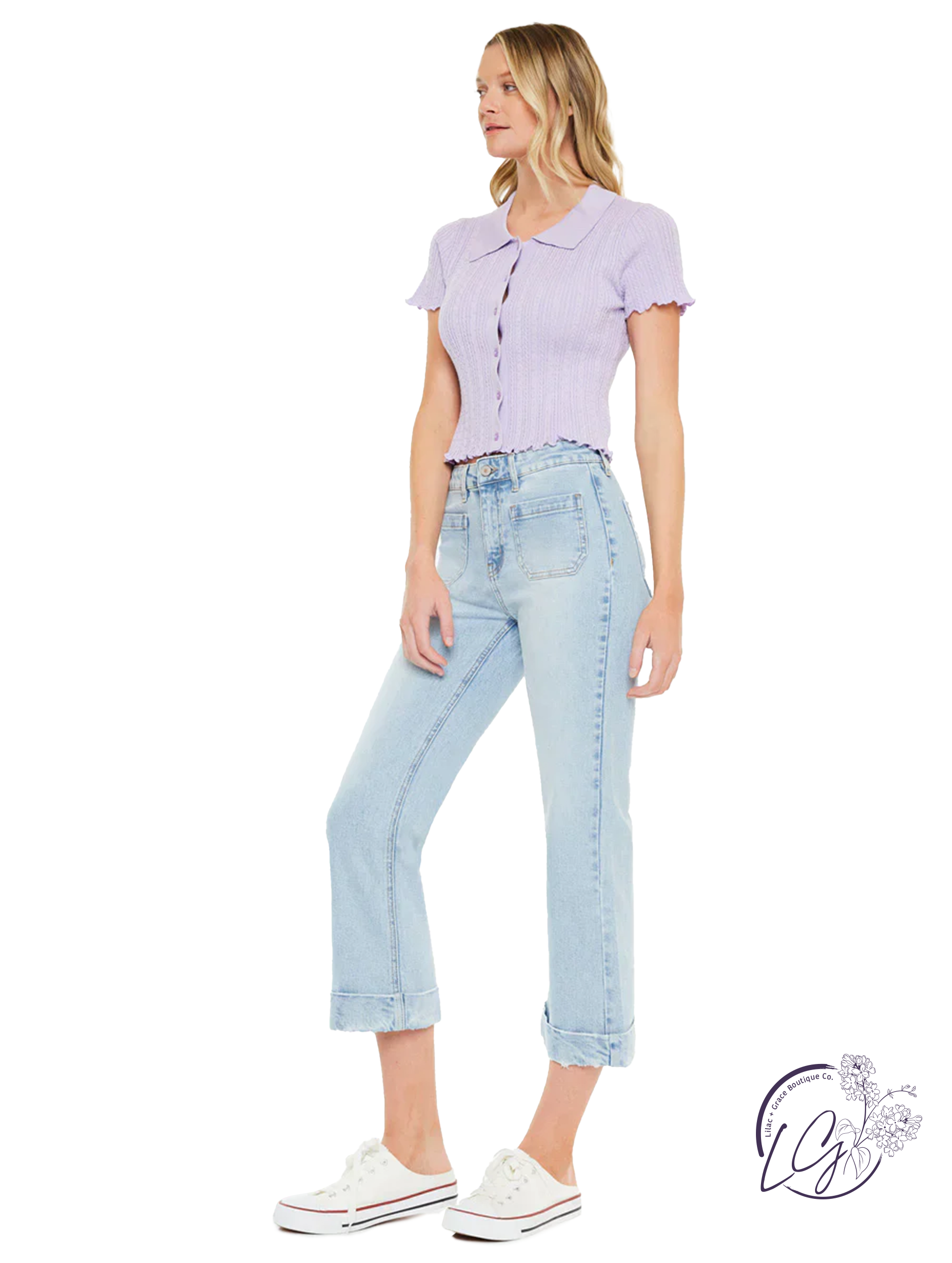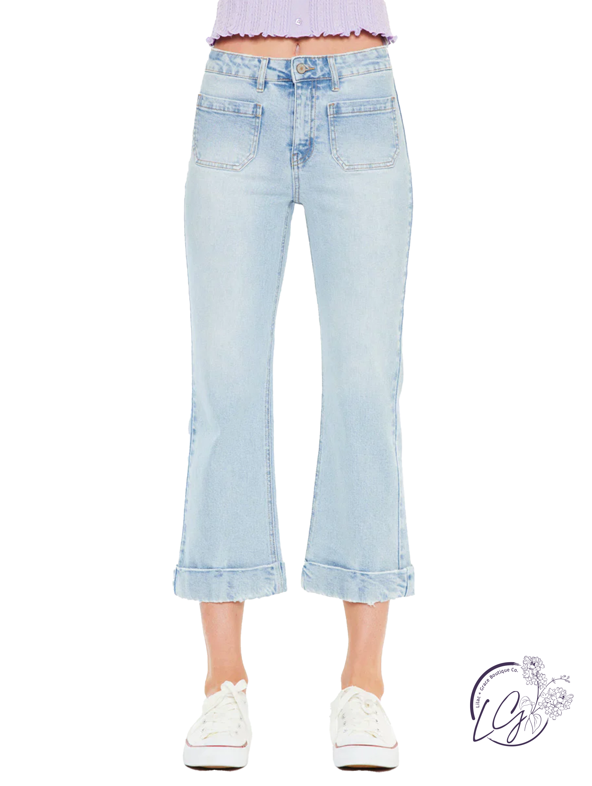 Elevate your wardrobe with the Harley High Rise Relaxed Cropped Flare by KanCan. Its high rise design and relaxed fit provide both comfort and style, while the cropped flare adds a trendy touch. Perfect for any occasion, this denim keeps you looking chic and confident.